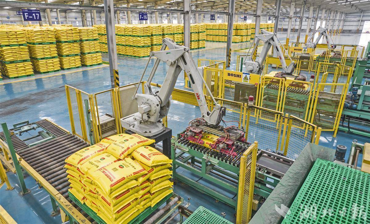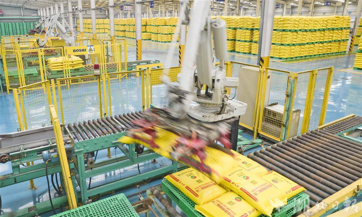 1月27日,兴发集团宜都生态工业园内磷肥包装车间内一片繁忙,智能机械手正在打包作业,叉车来回穿梭码垛。为保障节后春耕备耕市场需求,该企业春节期间不停产,实行轮班作业,稳定日产4000吨磷肥。