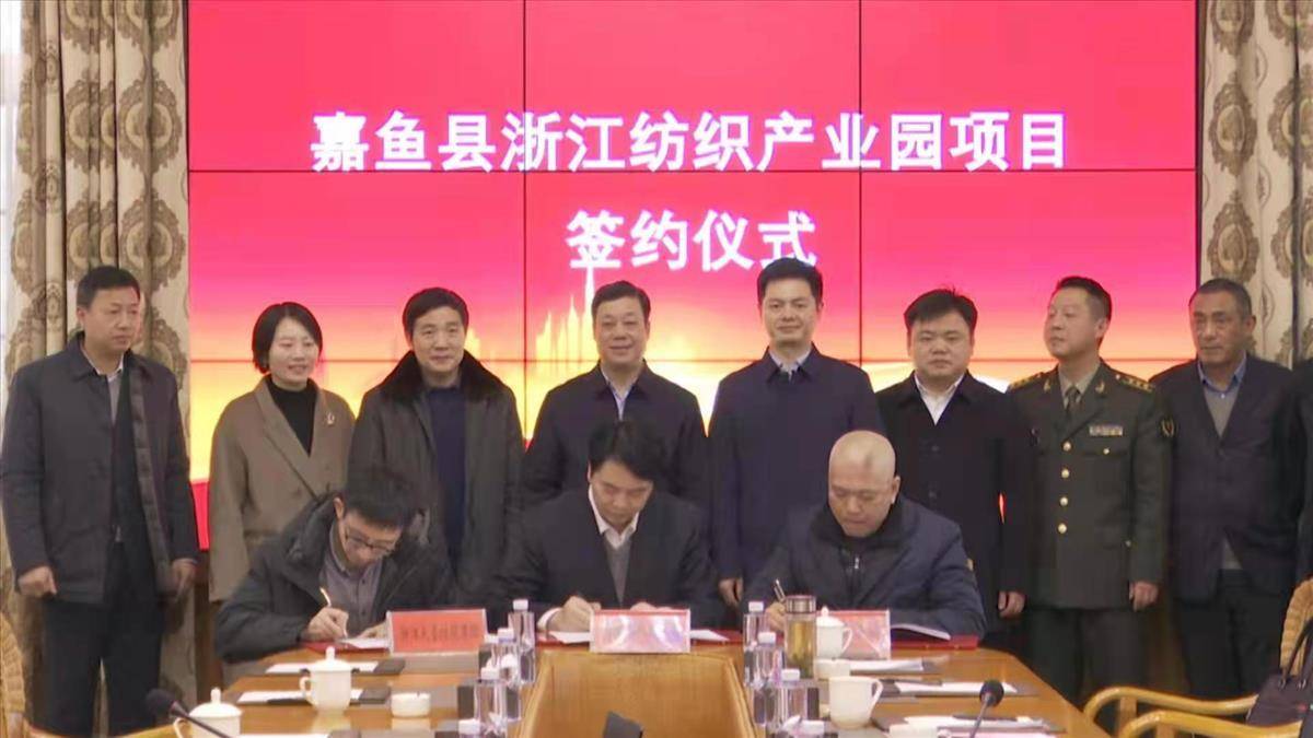 湖北日报讯(通讯员邓丹、陈运涛)1月28日,浙江冠南集团、浙江天圣控股集团和嘉鱼县人民政府签约建设嘉鱼县浙江纺织产业园项目,计划总投资320亿元。