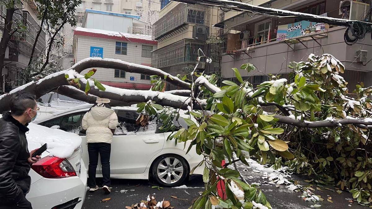 曾先生介绍,他早上出门时发现自家车辆被折断的树干压在下面,就立即拨打了社区应急服务站的电话寻求帮助。