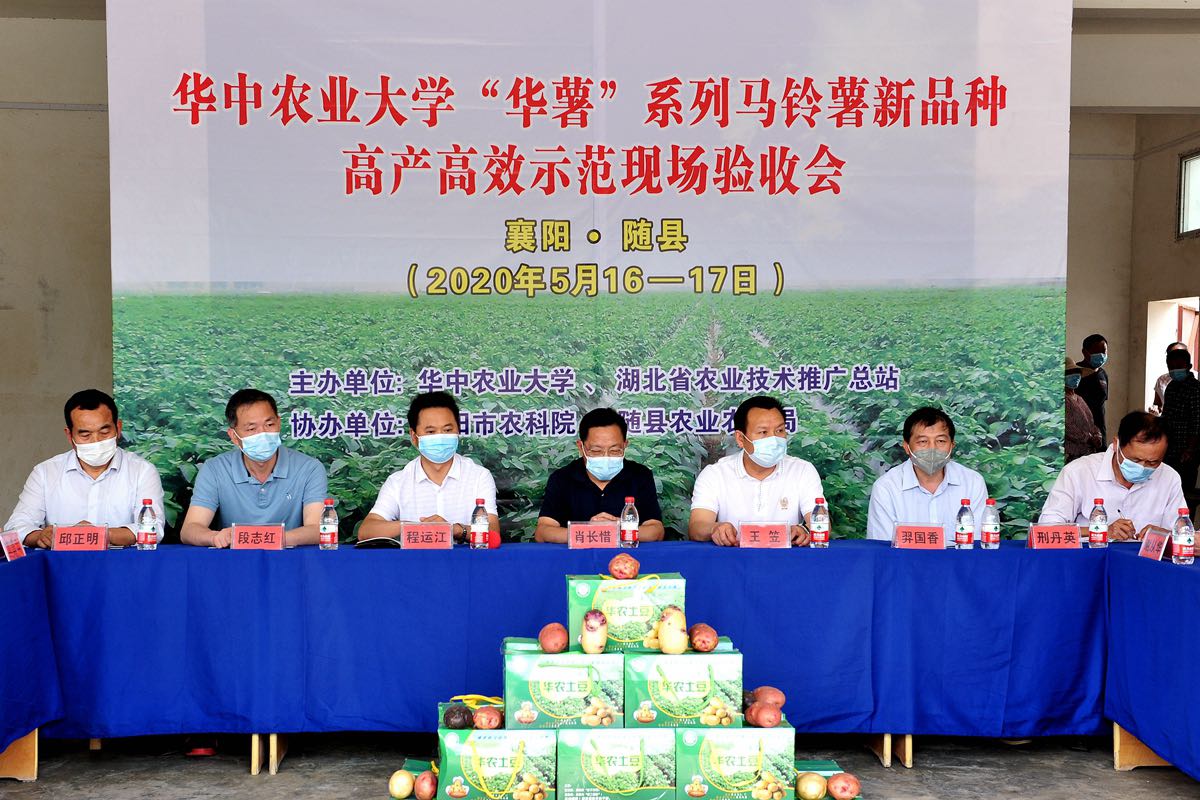 5月16日至17日,由华中农业大学、湖北省农业技术推广总站主办的“华薯”系列马铃薯新品种高产高效示范现场验收会分别在襄阳市、随州市举行。由湖北省农业农村厅、湖北省农业科学研究院、长江大学、襄阳市农业科学研究院等单位研究人员组成的验收专家组,分别对这两地“华薯1号”“华薯2号”马铃薯新品种示范点进行实地测产。