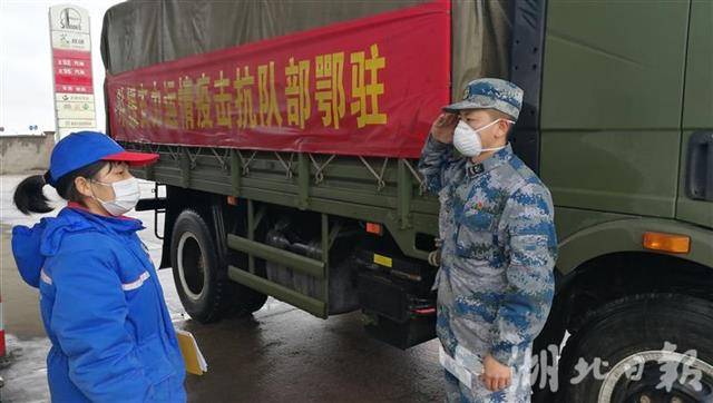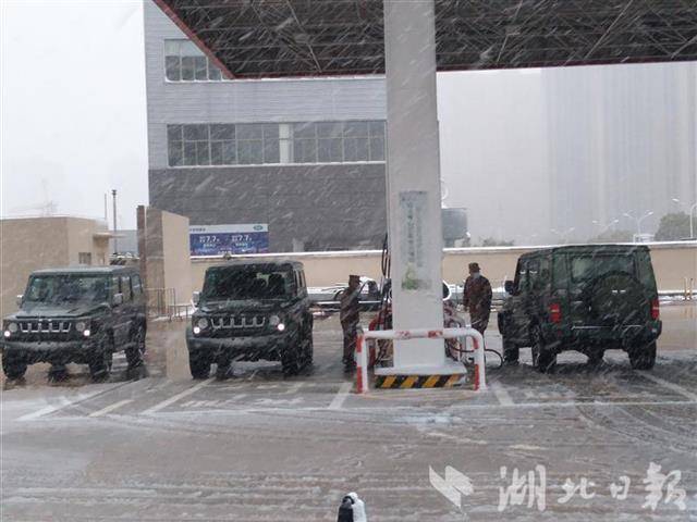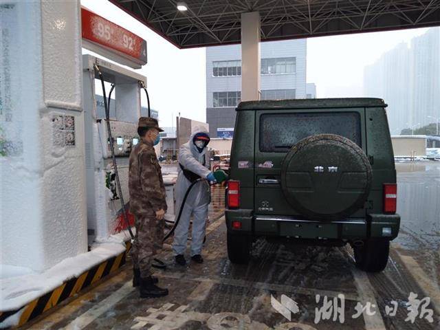 2月15日,武汉气温骤降,风雪交加,第一批军车来到光谷一路加油站加油,等候多时的加油员立即上前加油。“解放军战士下车后向我敬军礼,瞬间觉得心头暖暖的。”加油员余甲花说。