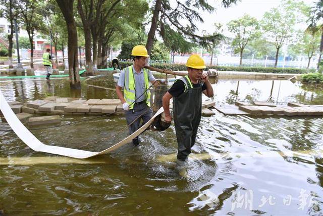 学堂洲片区工业园区积水严重,中国一冶城南项目部架设6条520米临时排软管,6台抽水泵站全力抢排,工业园区积水明显下降。暴雨导致北门中学部分场地被淹,中建三局城北项目部连夜调集12台水泵,日夜抽排积水并安排专人值守。