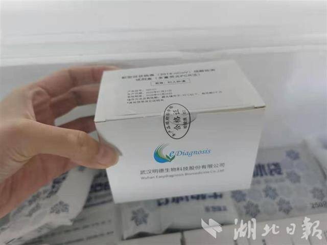 1月29日下午3时,5000份刚刚从生产线下线的新型冠状病毒核酸检测试剂盒被精心包装后安放在低温箱里,通过货车运至黄冈市红十字会,用于检测疑似患者、帮助医生做出明确诊断、为医生的后续治疗方案和防治方案提供科学依据。