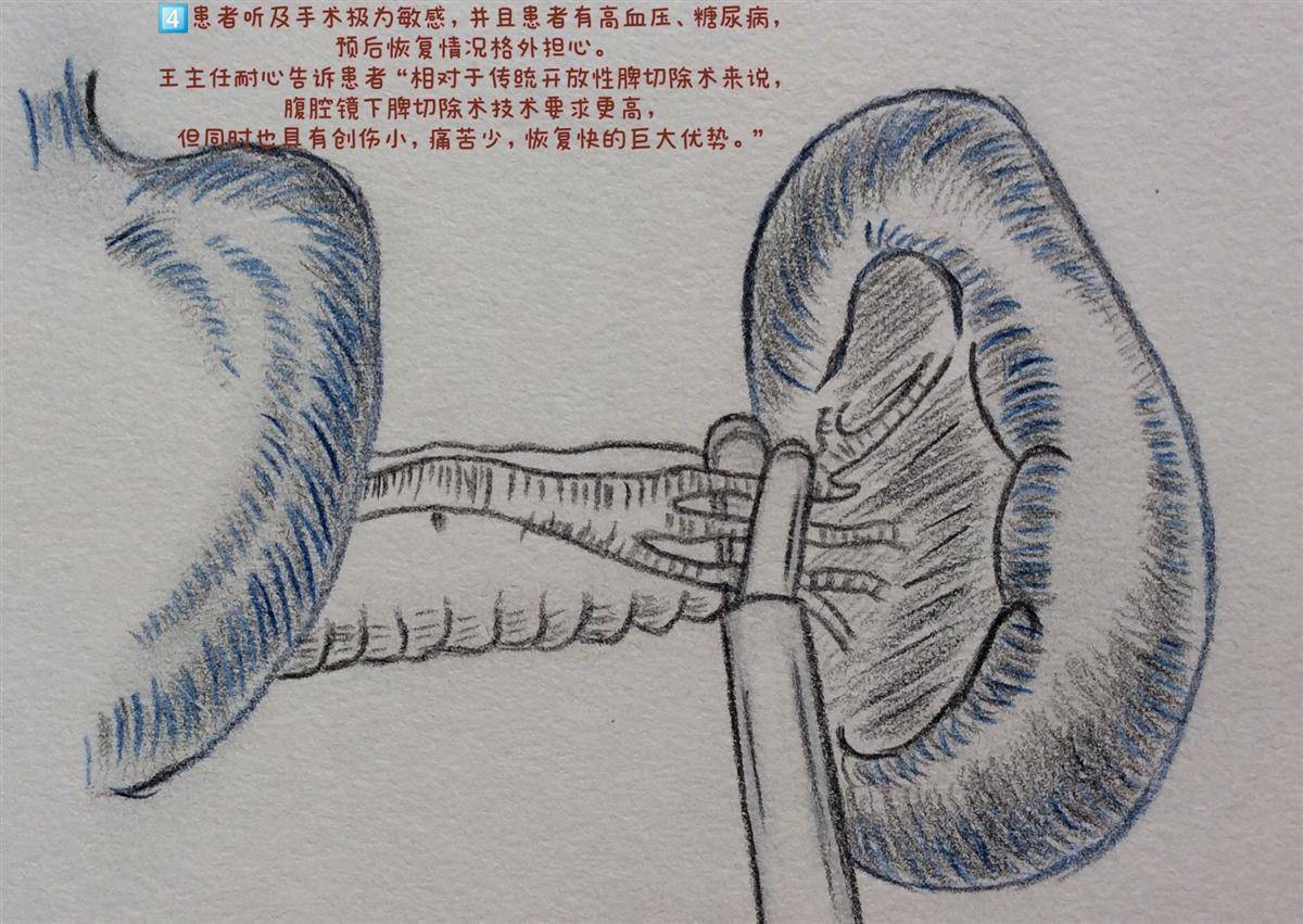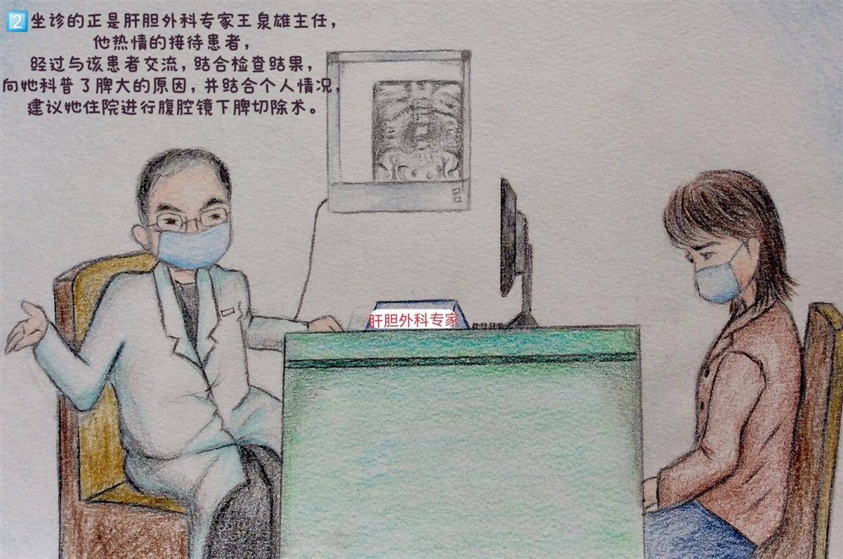 接诊的正是肝胆外科专家王泉雄主任,他热情地接待患者,经过与该患者交流,结合检查结果,向她科普了脾大的原因,并结合病人个人情况,建议她住院进行腹腔镜下脾切除术。