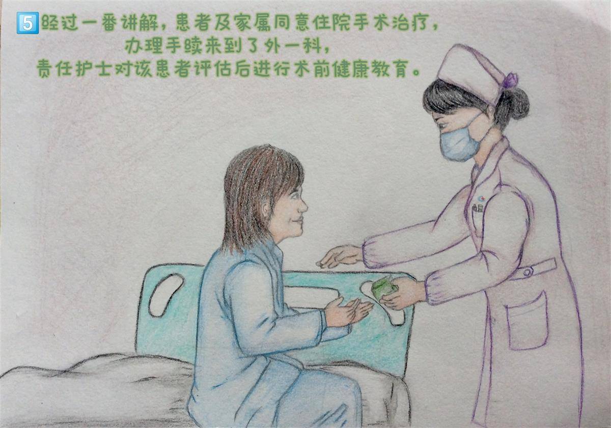 漫画直观易懂,再加上王主任一番讲解,患者及家属同意住院手术治疗,办理手续住进了肝胆外科。赵小欢也一直跟进这位患者,将患者看病过程用漫画记录了下来。