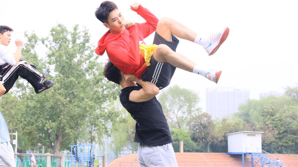 体育学院大二学生李酉凯也认为,队员间的默契配合对于舞龙舞狮队而言十分重要。比如舞龙时会做一些组合类的动作,会将绕人、夹腰、踩腿、踩肩、单侧起伏、螺旋跳龙等编排成一套动作,每名队员都需要各司其职。在这样的训练过程中,不仅增强了大家的默契,也培养了坚韧不拔、团结合作的精神。