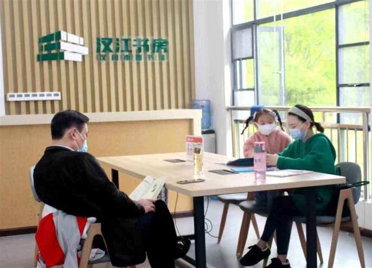 4月17日上午,汉川市汉川公园内的汉江书房热闹而不喧哗,一些市民与学生在静静地享受阅读的美好时光。