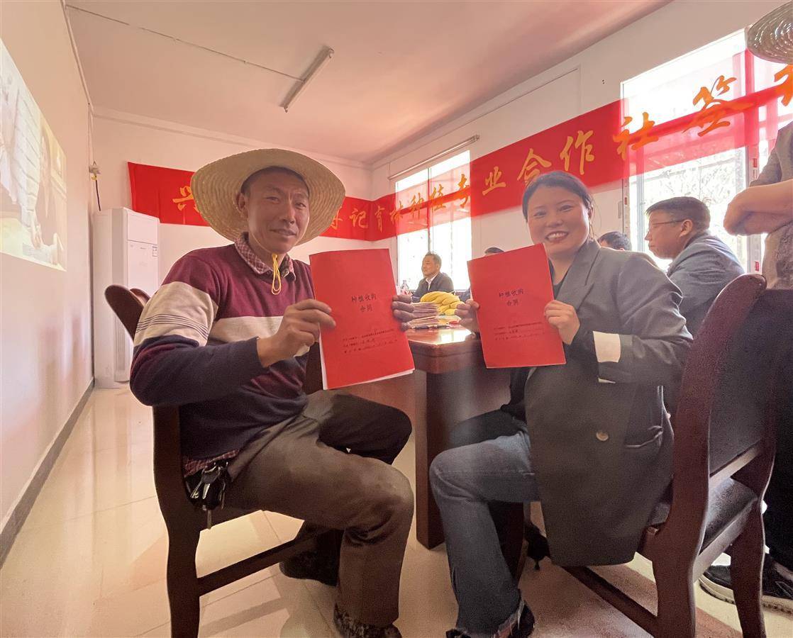 当天合作社与当地36户菜农现场签定《包菜种植收购协议》,种植面积达100亩,后期将由合作社统一配发种子、提供技术指导、包菜成熟后以不低于市场价统一收购,订单模式让农户吃下“定心丸”。