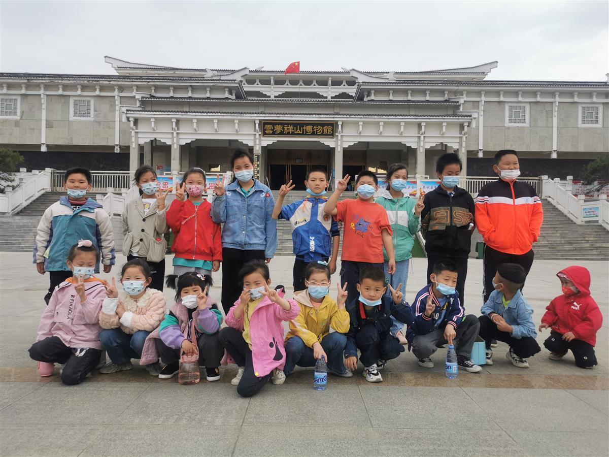 5月14日上午,云梦隔蒲潭镇新马村志愿者带着村里16名留守儿童来到祥山博物馆“游学”。