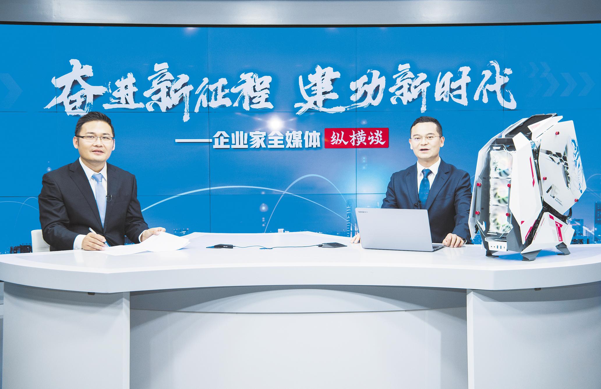 5月5日,湖北攀升电脑创始人、董事长陈孝军(右)做客湖北日报企业家全媒体纵横谈。 (湖北日报全媒记者 魏铼 摄)