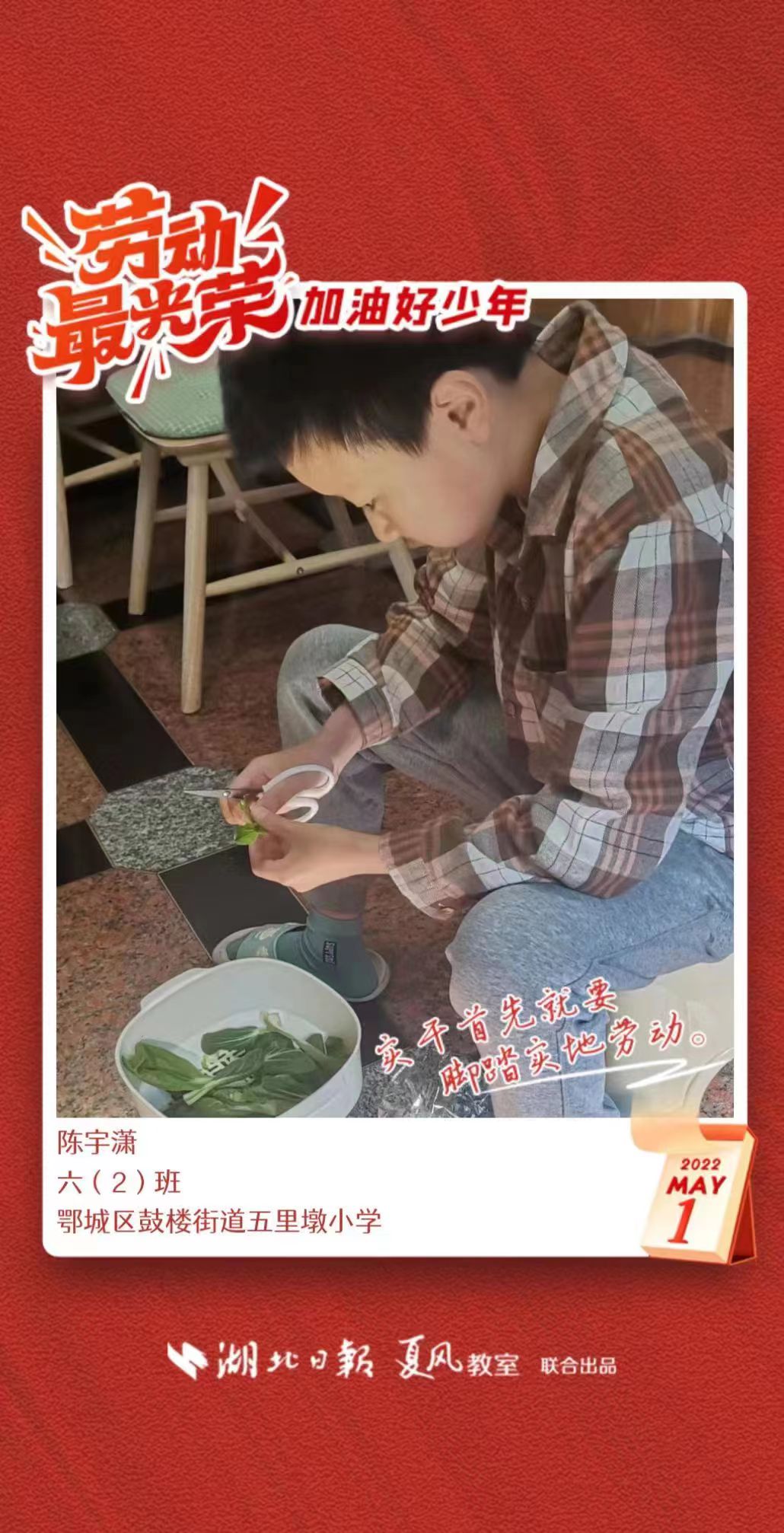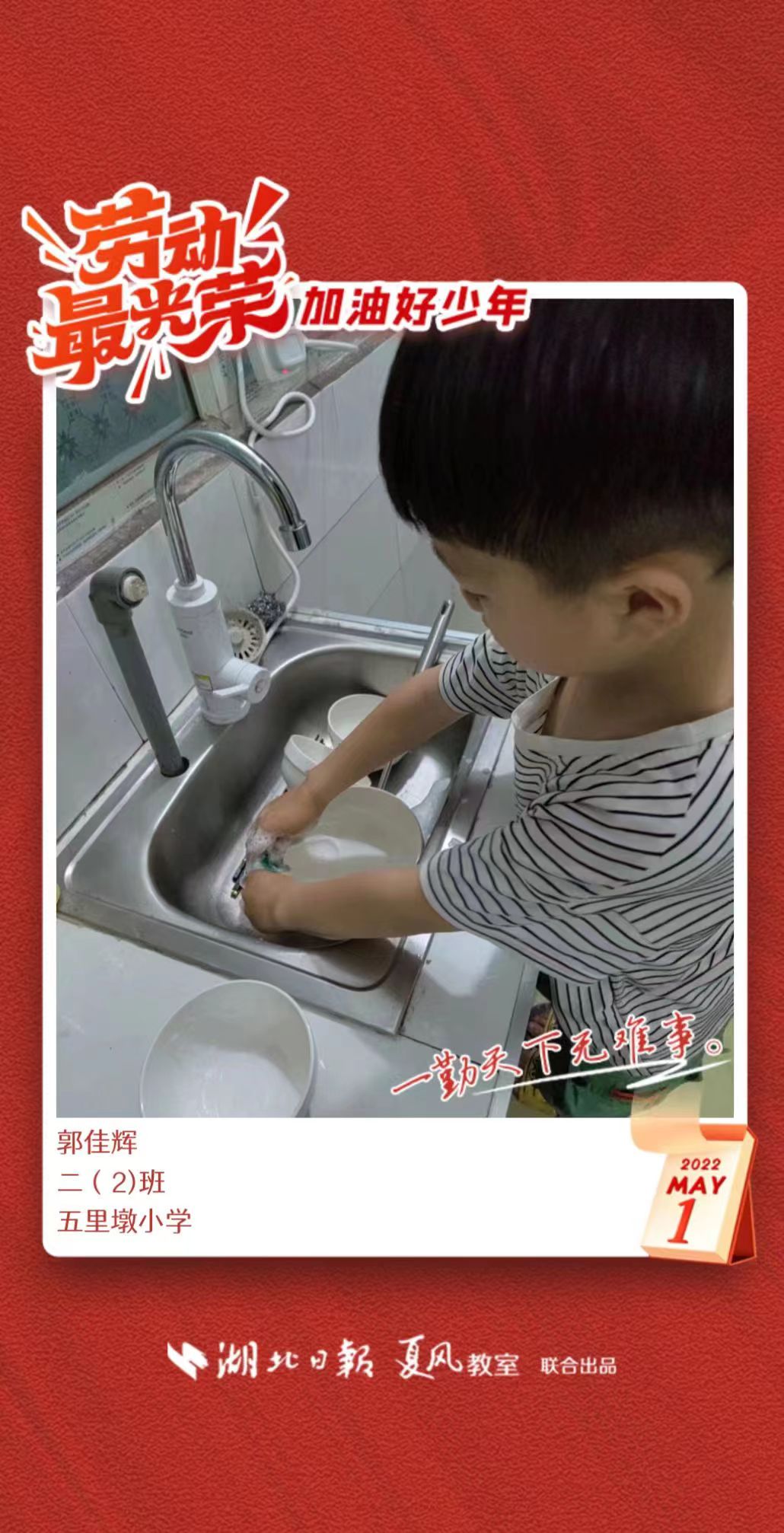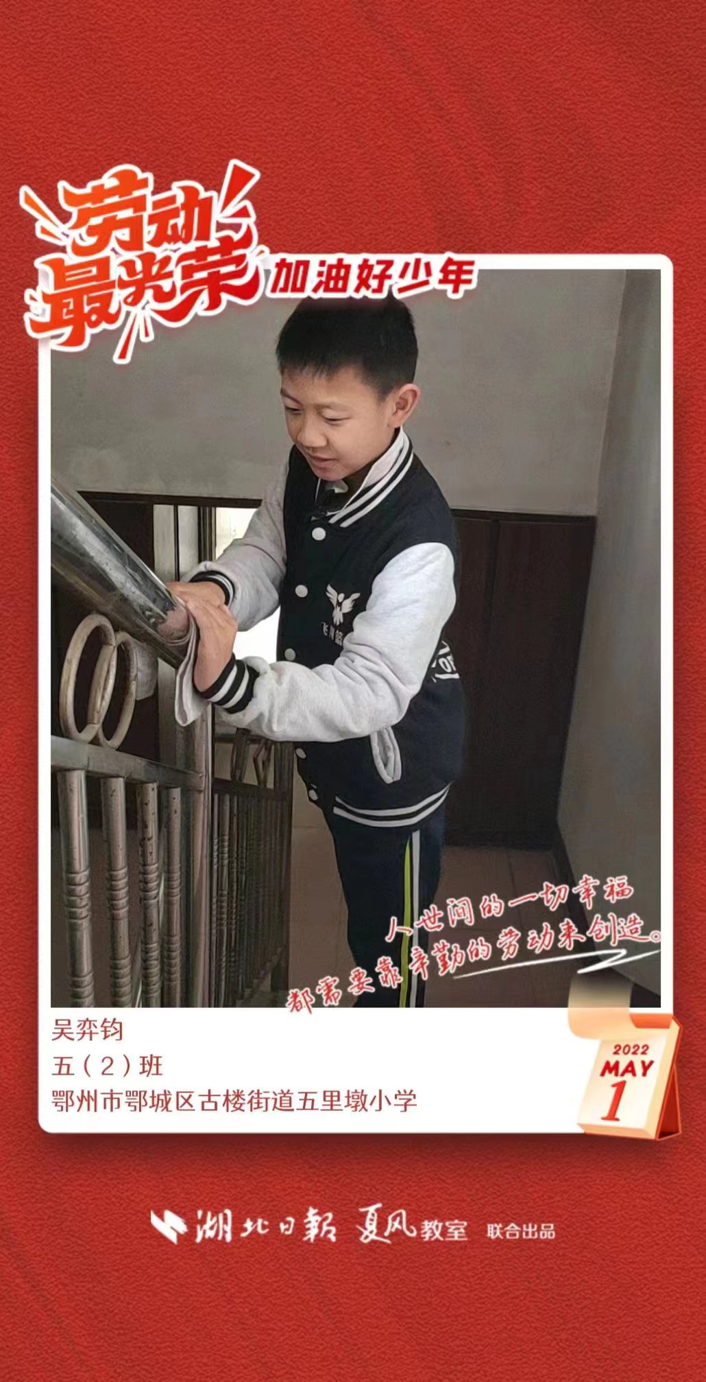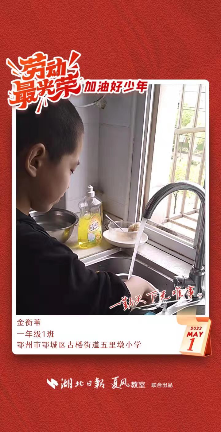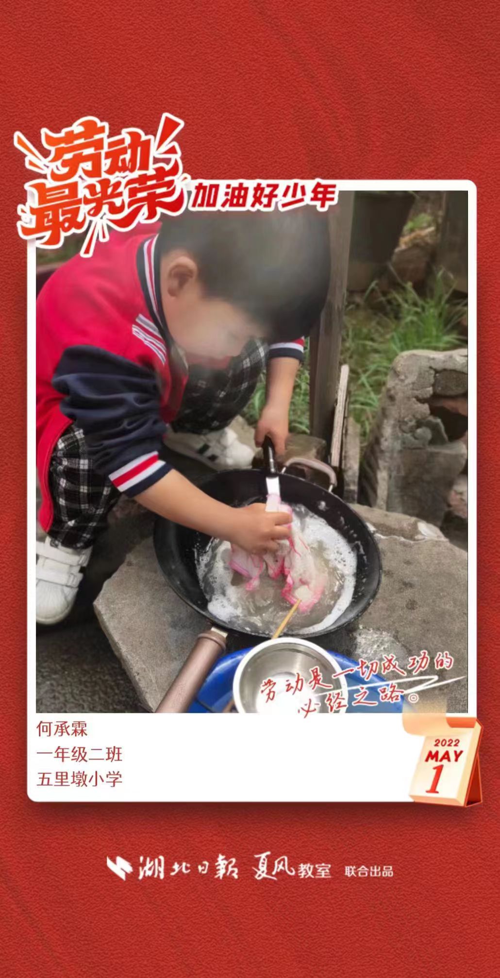 为进一步加强劳动教育,强化“五育并举”的教育理念,促进学生全面发展。鄂州市鄂城区古楼街道五里墩小学组织学生开展“一份特别的劳动节作业”活动,引导学生养成爱劳动的好习惯,学会尊重他人劳动,珍惜劳动果实。