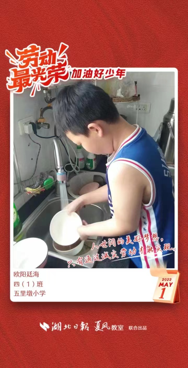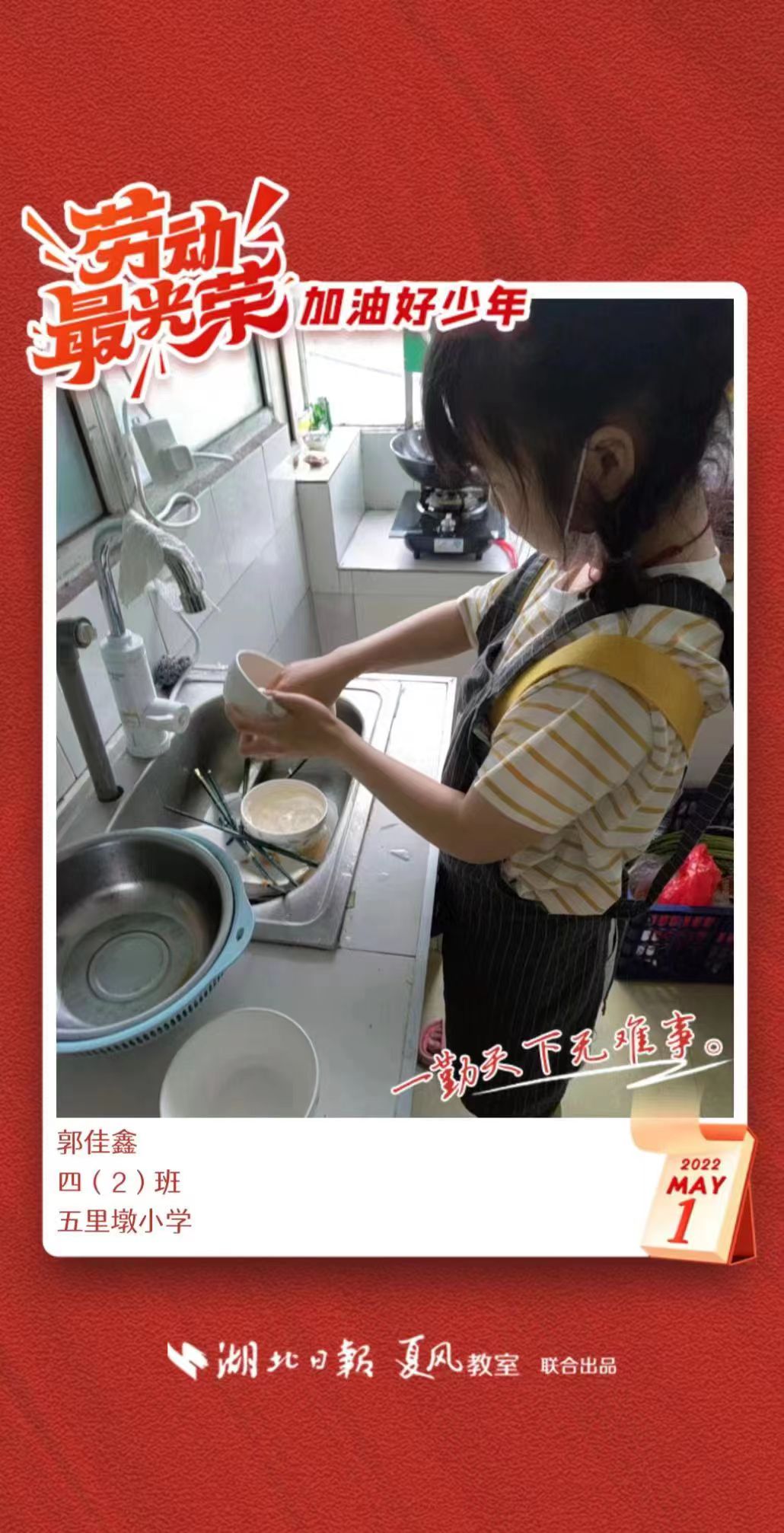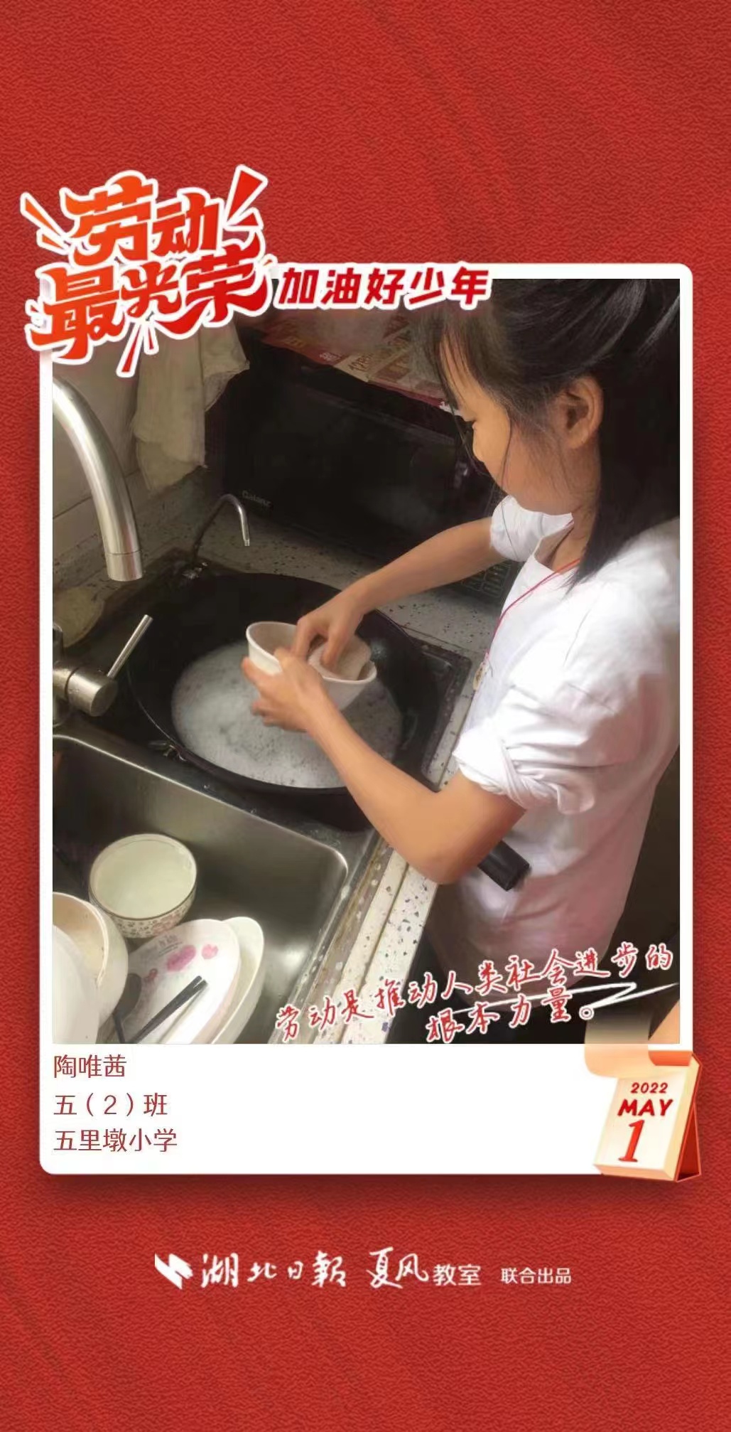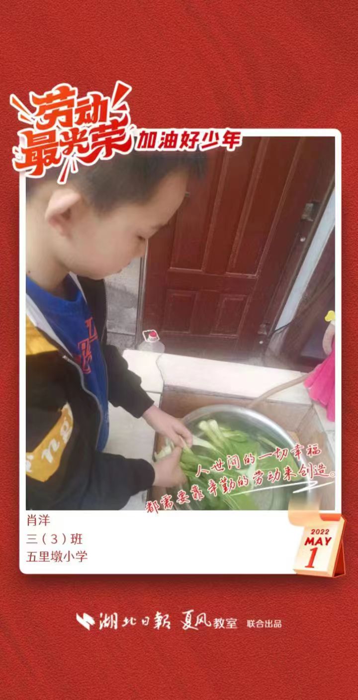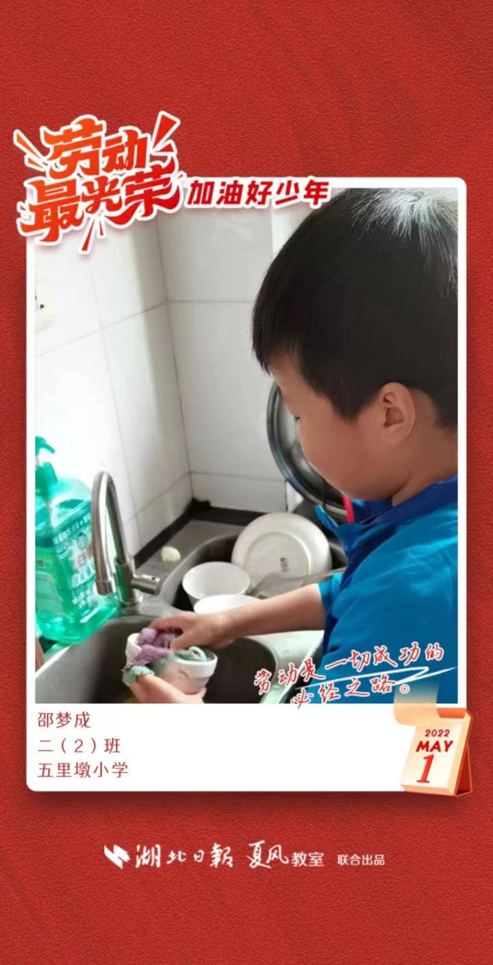 为进一步加强劳动教育,强化“五育并举”的教育理念,促进学生全面发展。鄂州市鄂城区古楼街道五里墩小学组织学生开展“一份特别的劳动节作业”活动,引导学生养成爱劳动的好习惯,学会尊重他人劳动,珍惜劳动果实。