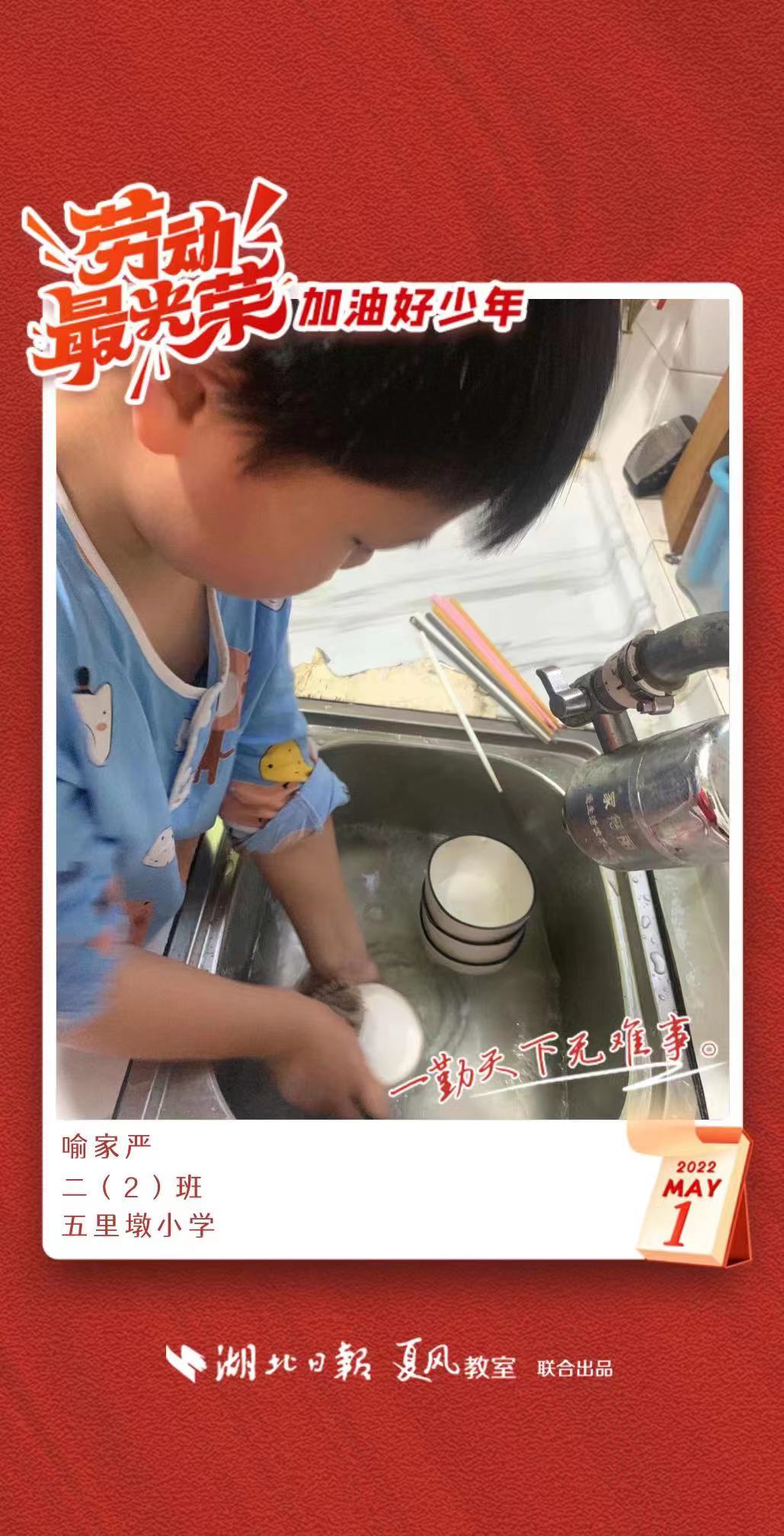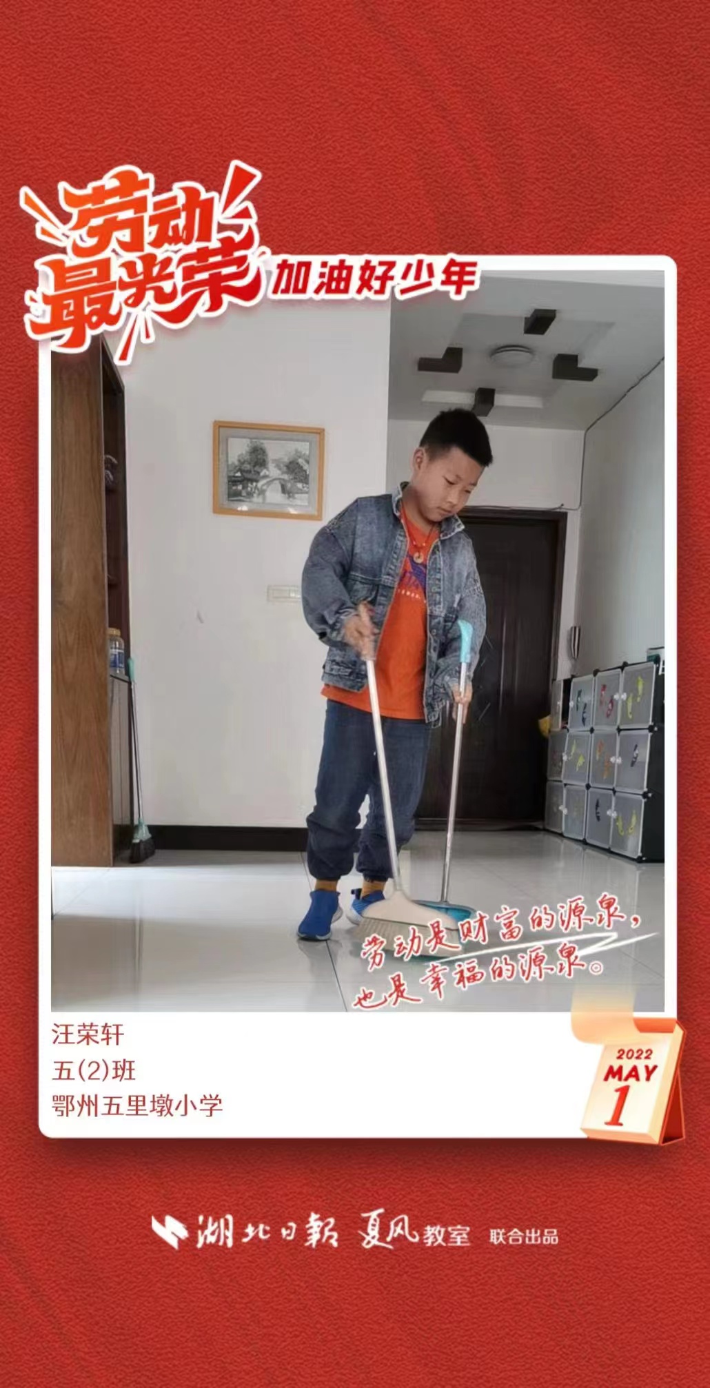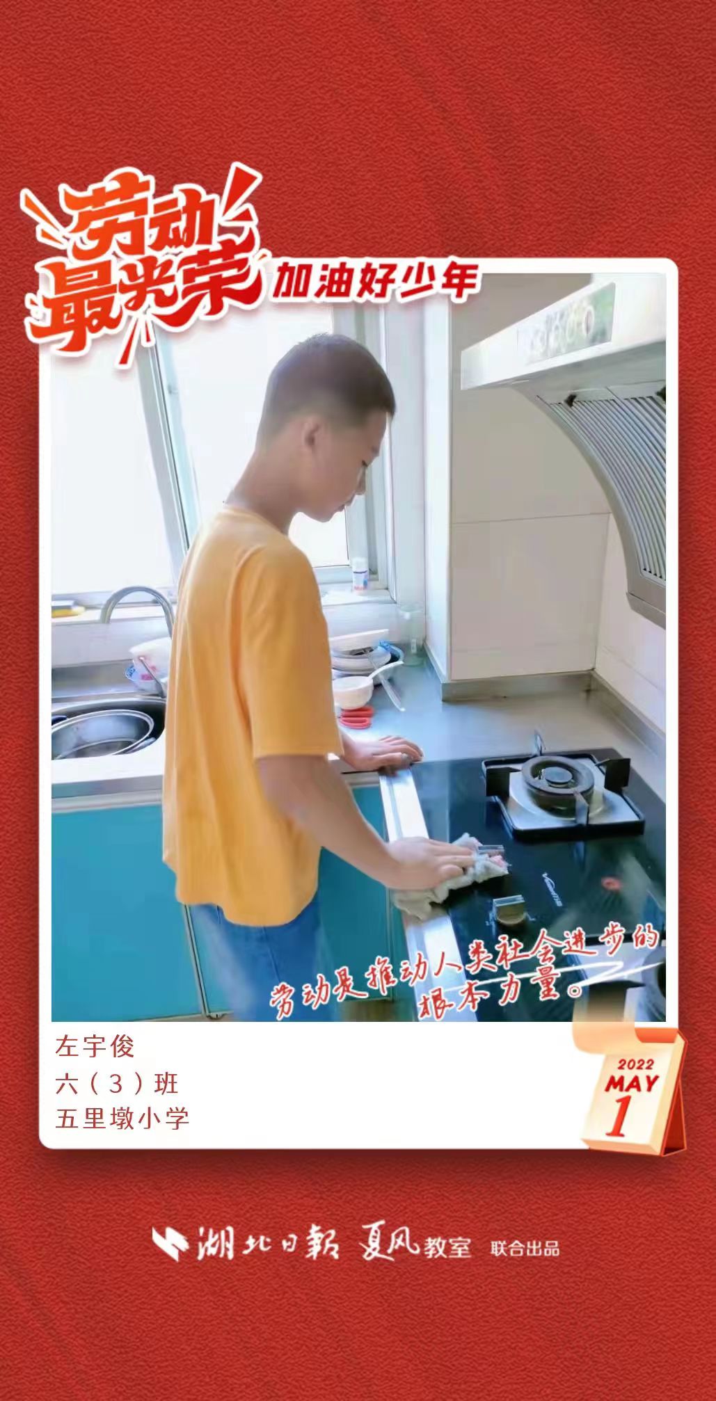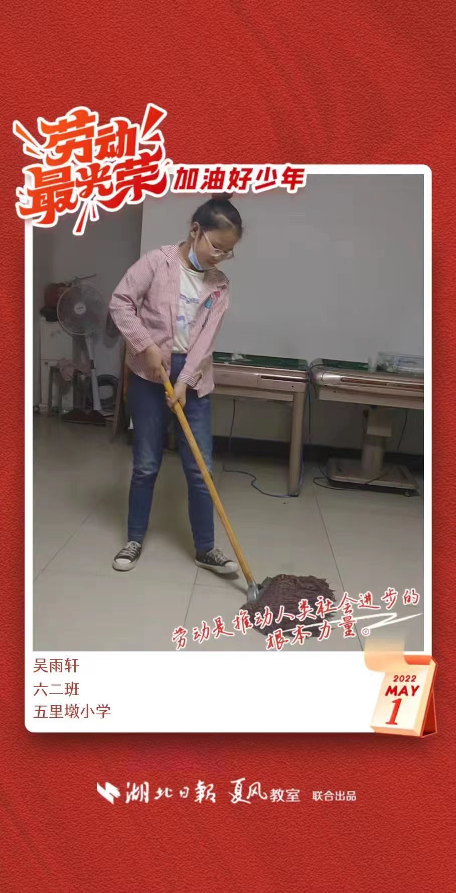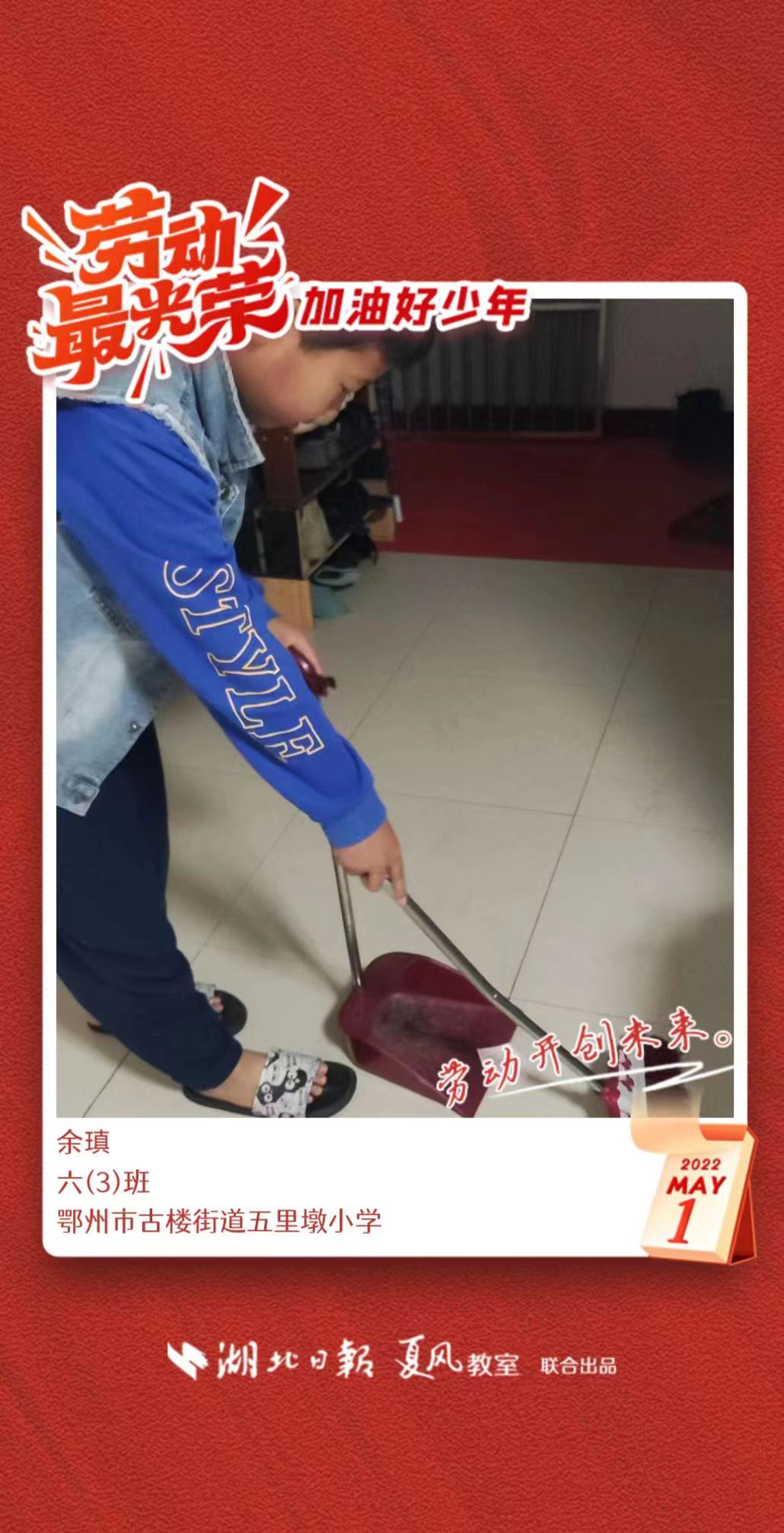 为进一步加强劳动教育,强化“五育并举”的教育理念,促进学生全面发展。鄂州市鄂城区古楼街道五里墩小学组织学生开展“一份特别的劳动节作业”活动,引导学生养成爱劳动的好习惯,学会尊重他人劳动,珍惜劳动果实。