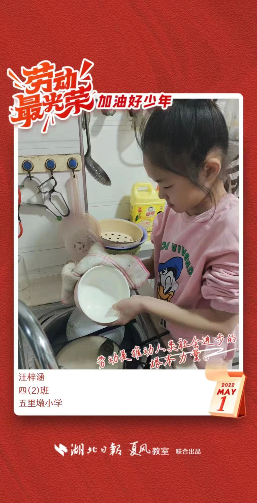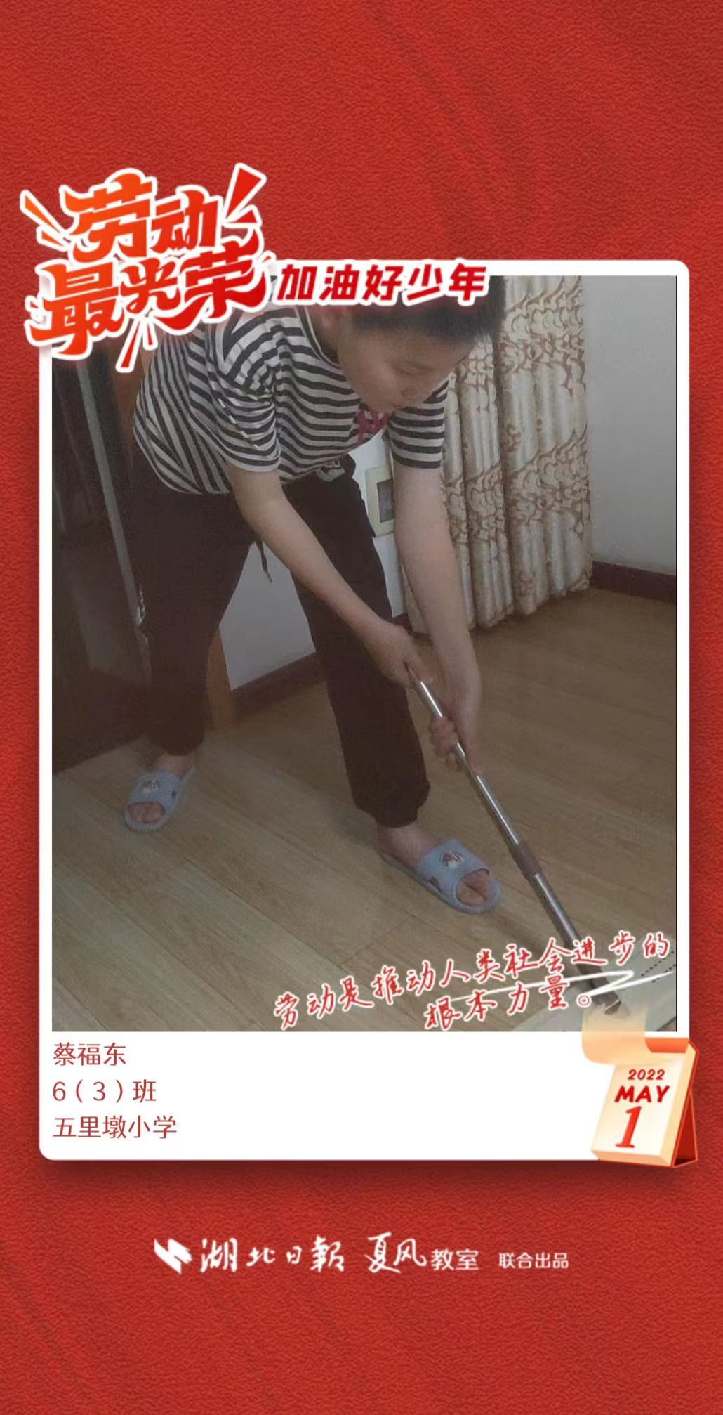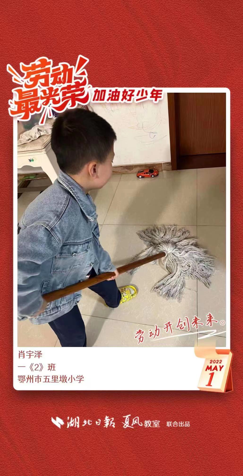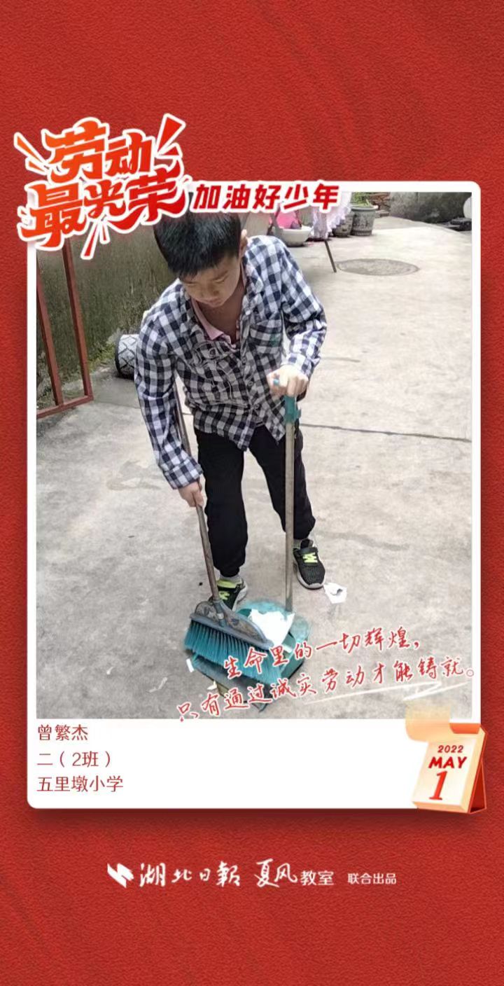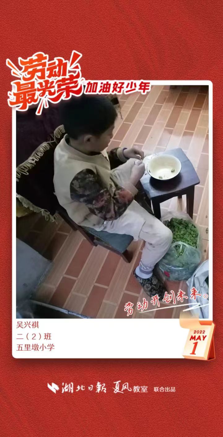 为进一步加强劳动教育,强化“五育并举”的教育理念,促进学生全面发展。鄂州市鄂城区古楼街道五里墩小学组织学生开展“一份特别的劳动节作业”活动,引导学生养成爱劳动的好习惯,学会尊重他人劳动,珍惜劳动果实。