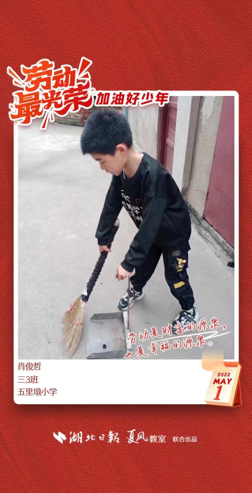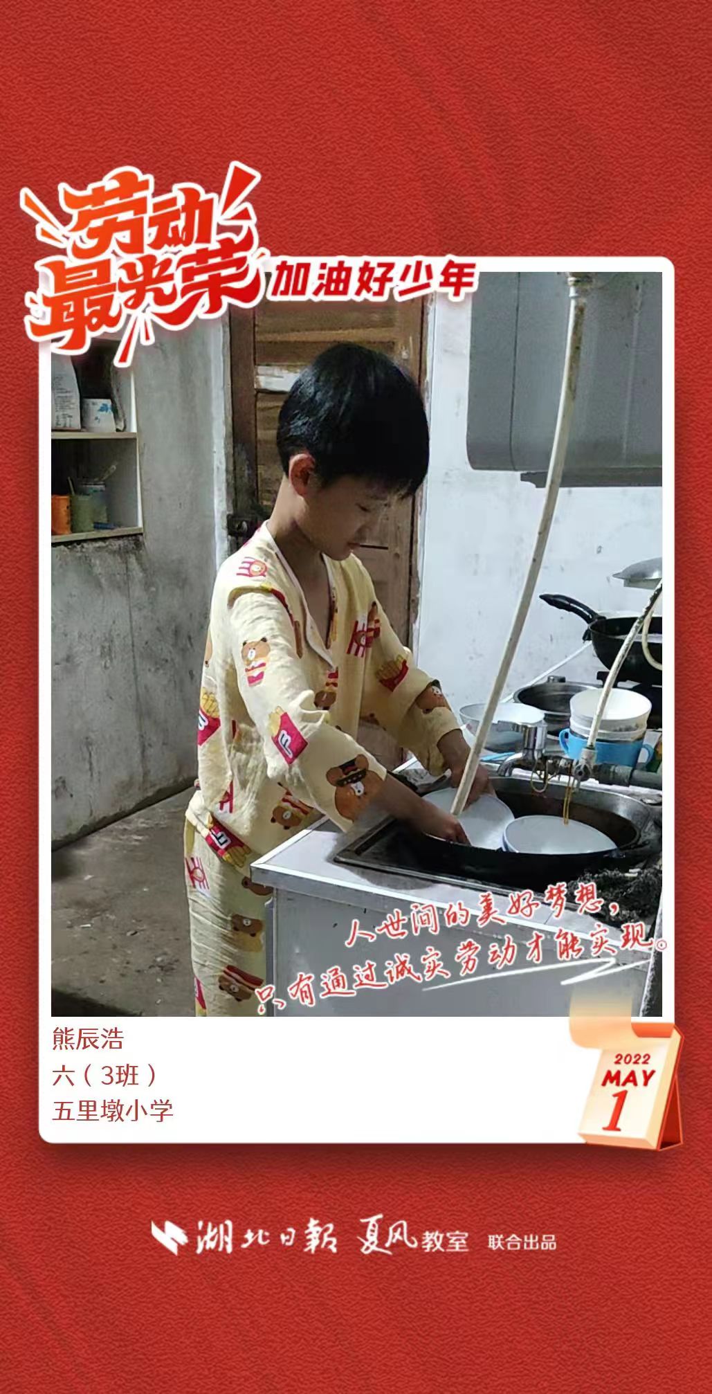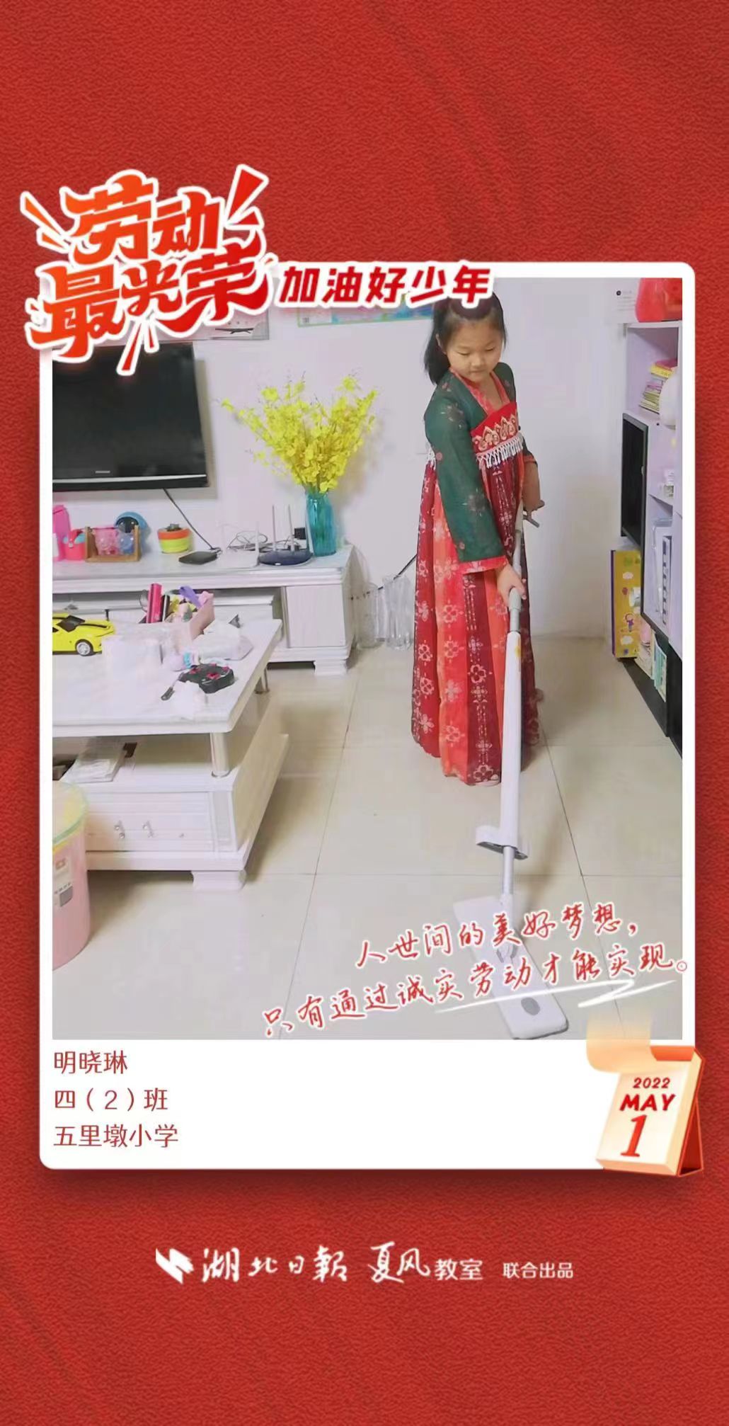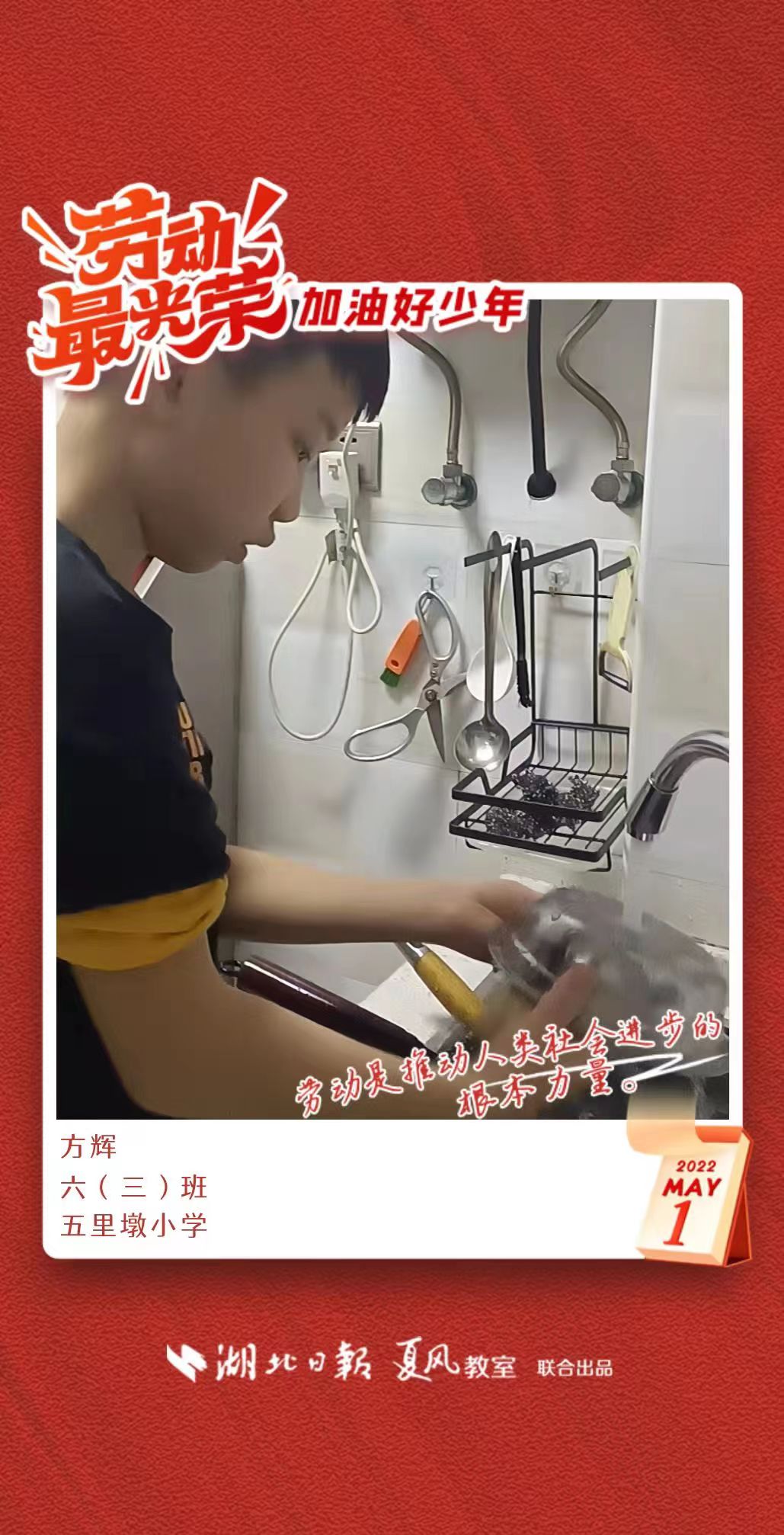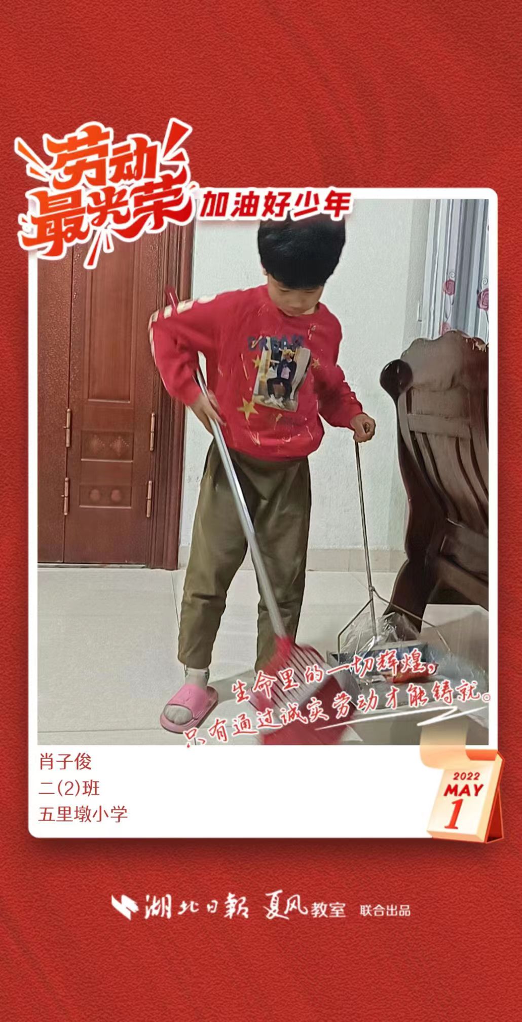 为进一步加强劳动教育,强化“五育并举”的教育理念,促进学生全面发展。鄂州市鄂城区古楼街道五里墩小学组织学生开展“一份特别的劳动节作业”活动,引导学生养成爱劳动的好习惯,学会尊重他人劳动,珍惜劳动果实。
