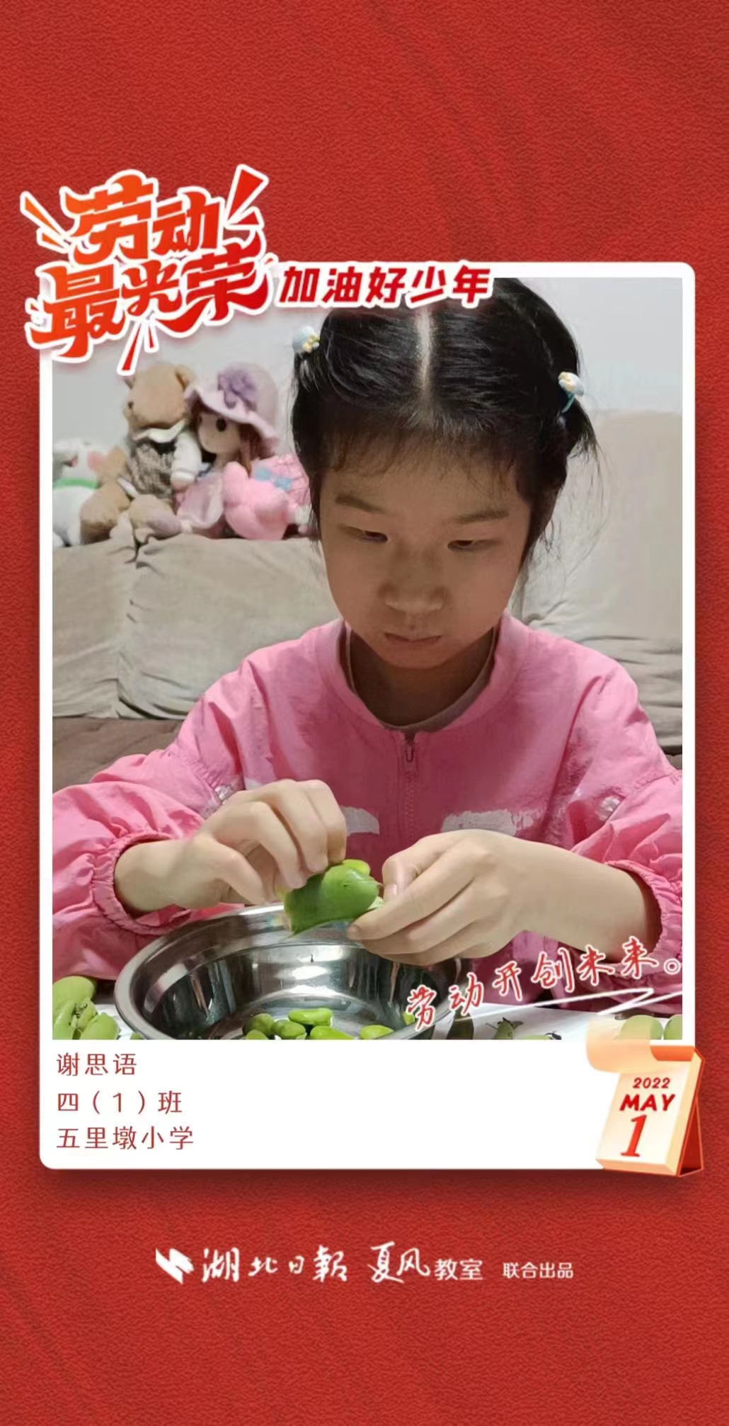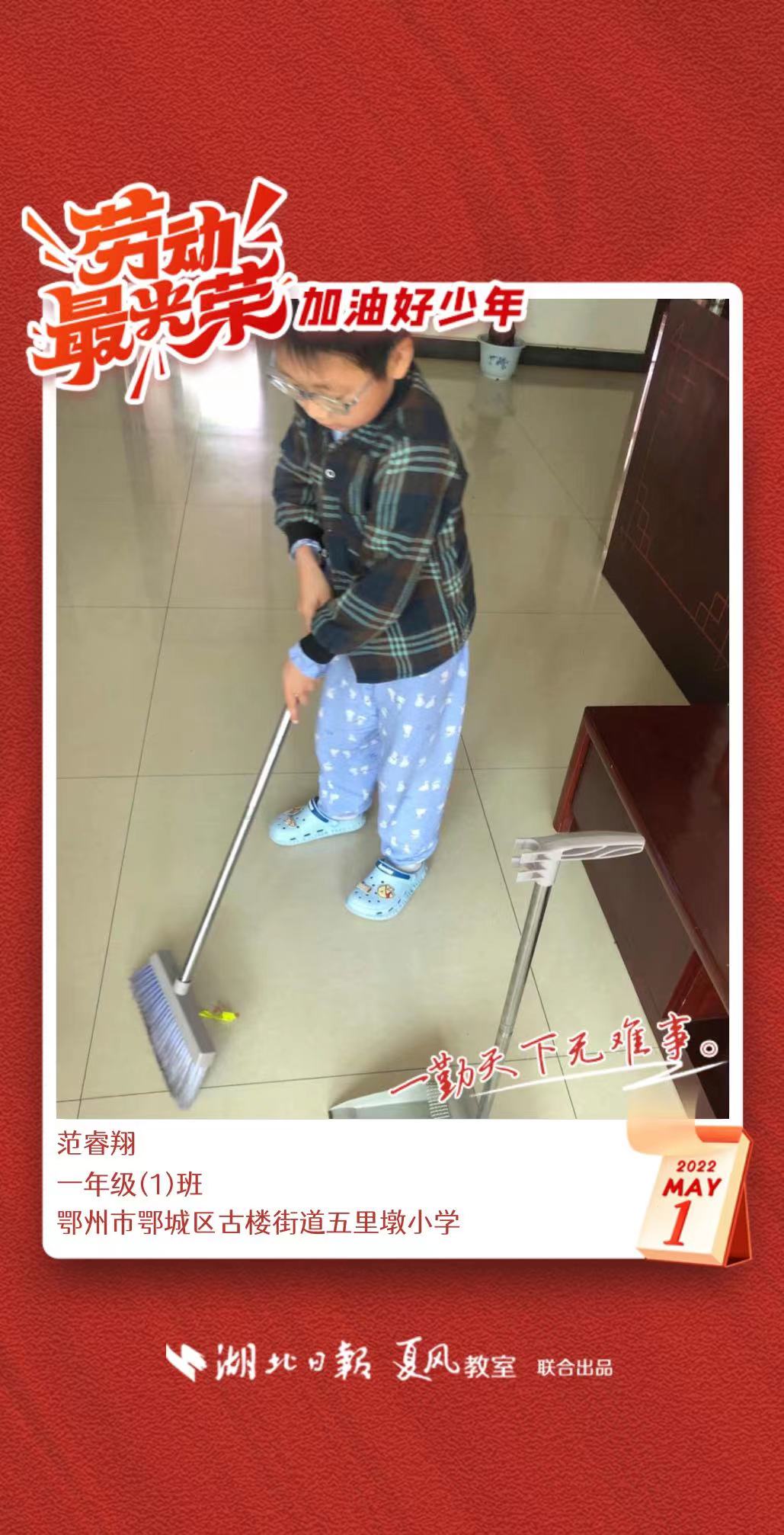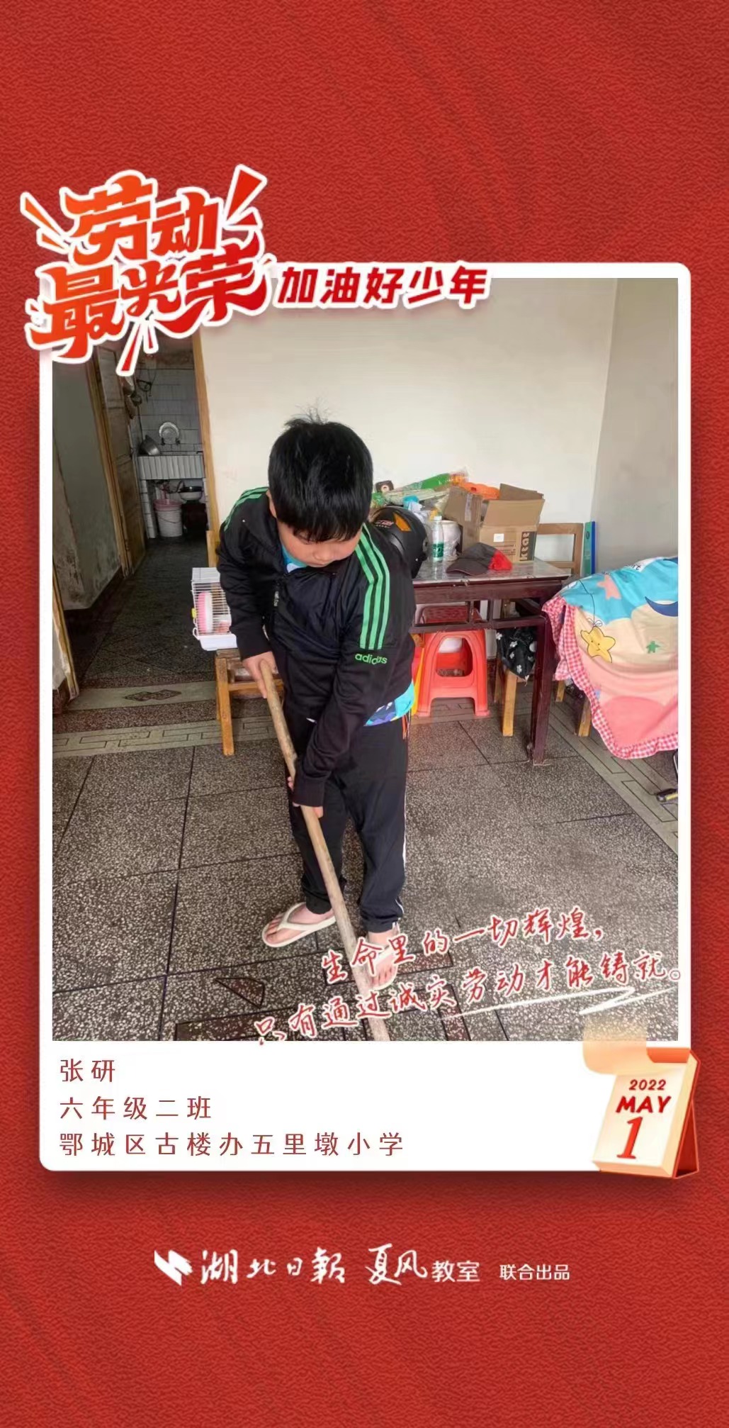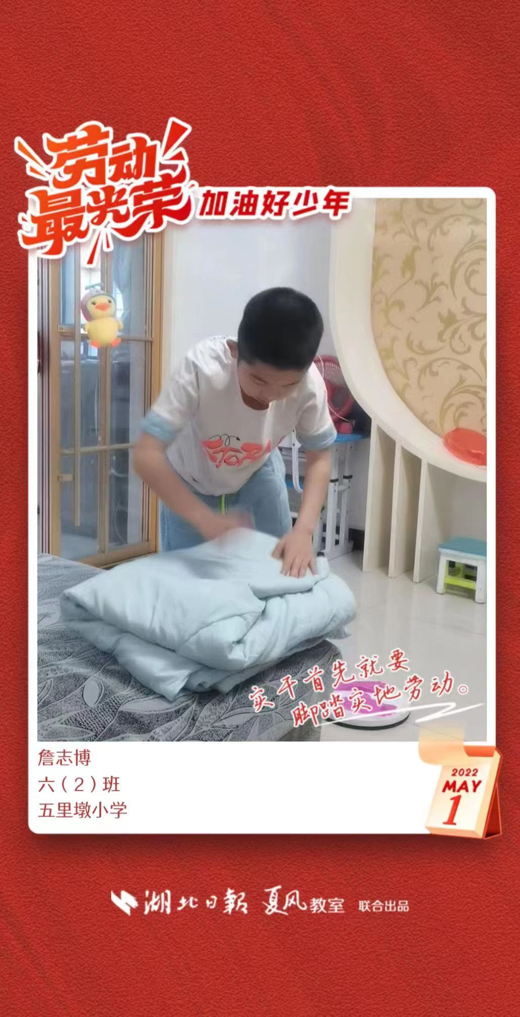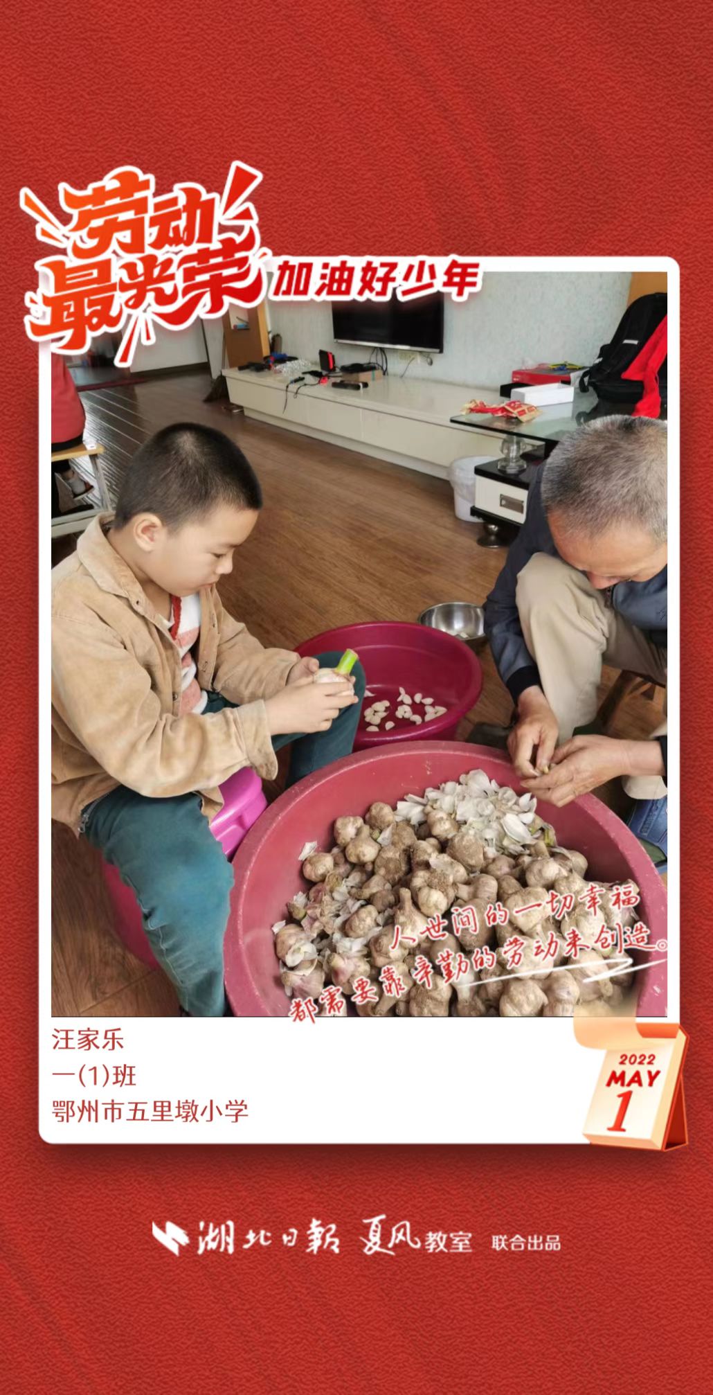 为进一步加强劳动教育,强化“五育并举”的教育理念,促进学生全面发展。鄂州市鄂城区古楼街道五里墩小学组织学生开展“一份特别的劳动节作业”活动,引导学生养成爱劳动的好习惯,学会尊重他人劳动,珍惜劳动果实。
