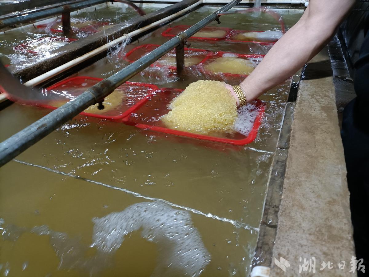 “近几个月正是鮰鱼孵化的好时节,基地内设有500个专门孵化美国斑点叉尾鮰鱼的孵化池,预计今年的产量在两亿尾左右,产值在一千万左右。” 基地负责人介绍道。