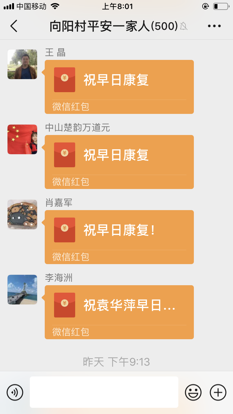 湖北日报讯(通讯员刘小平)5月23日,安陆市烟店镇向阳村“平安一家人”的村民群里面,出现自发为身患白血病的村民袁华萍爱心捐助的一幕。