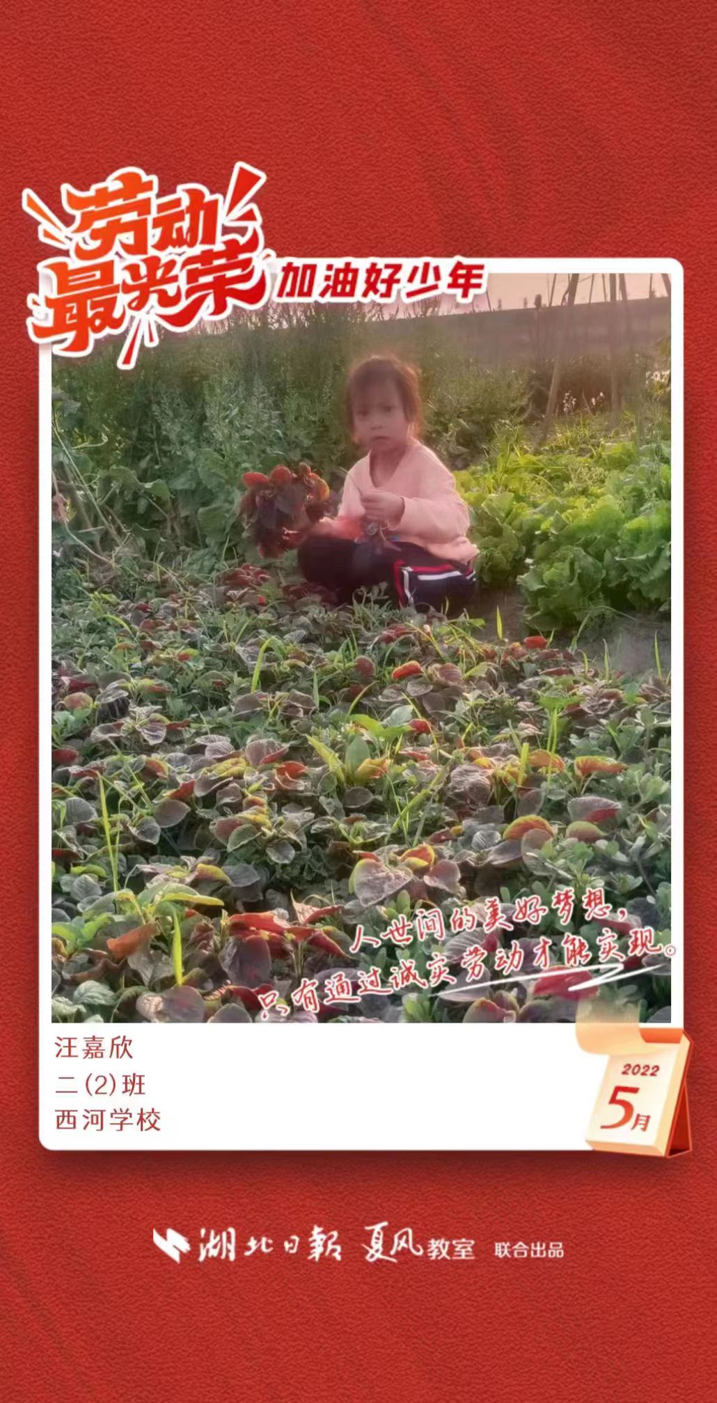 “劳动最光荣 加油好少年”