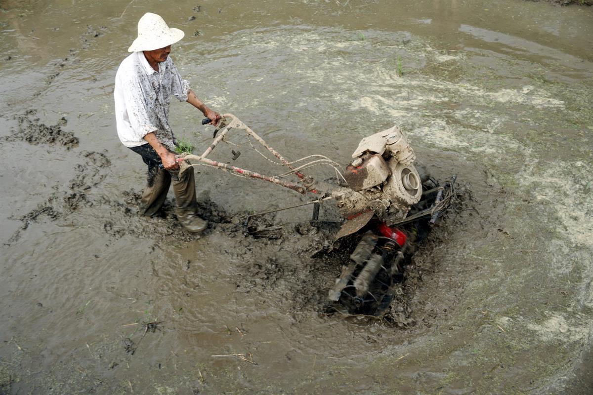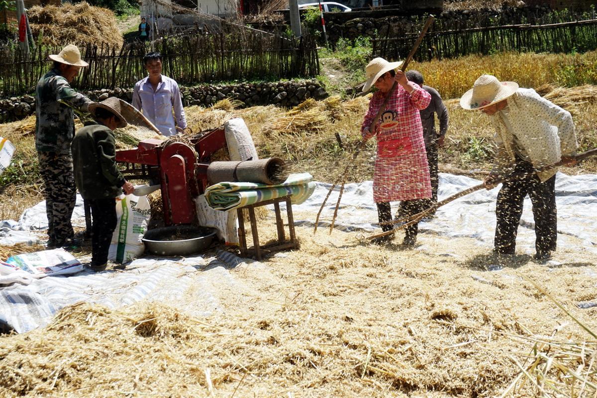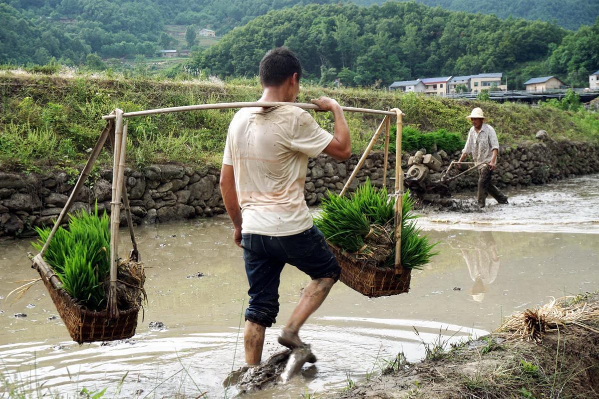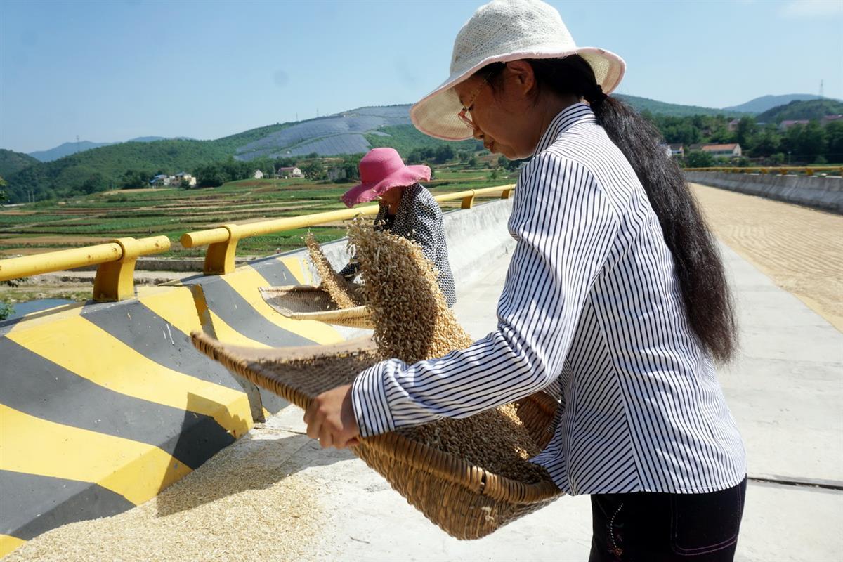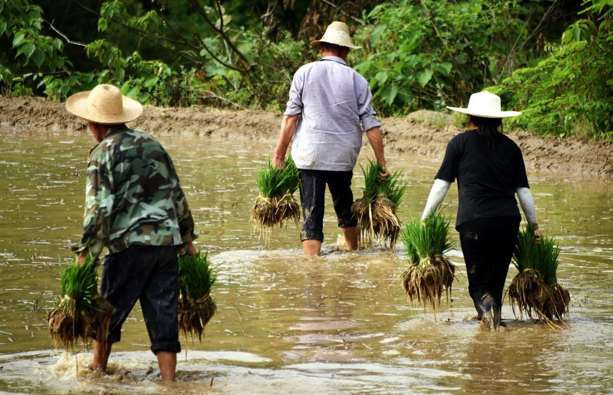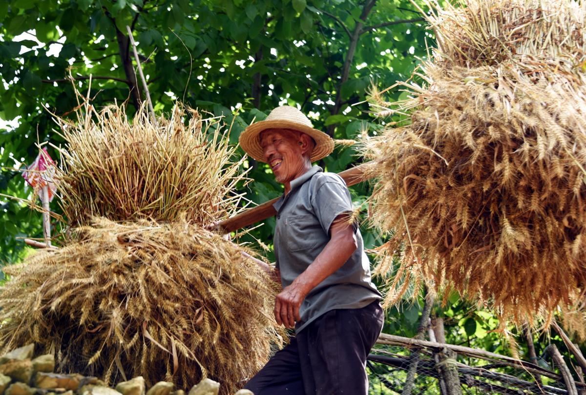 十堰市郧阳区32万亩小麦进入抢收抢种时节,亩产达650斤左右,总产量达7.8万吨。互助水稻插秧紧跟其后。图为5月29日,麦收和插秧时的情景。(湖北日报通讯员 周家山 摄)