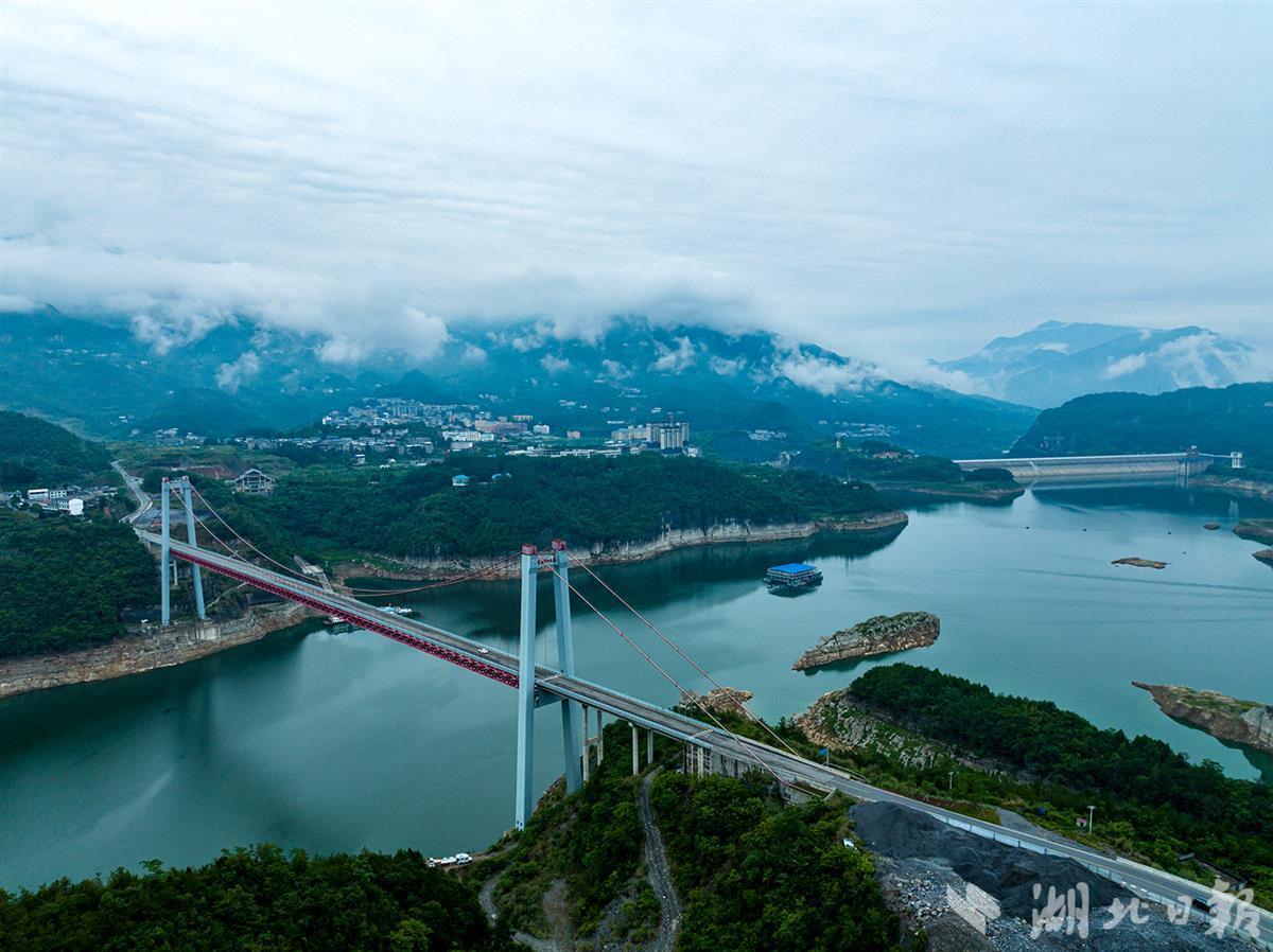 6月12日,连日阴雨过后的巴东县水布垭镇境內云雾弥漫,山青水绿。清江水布垭旅游景区位于八百里清江中游,属恩施生态旅游圈的重要节点,更是清江画廊的重要组成部分,加之这里有世界最高面板堆石大坝水布垭大坝和清江大桥两个横跨清江的建筑工程景观,使秀美清江两岸的自然风光和两大人文工程景观相映成趣,成为清江画廊中浓墨重彩之笔,引得无数游客前来观光旅游。