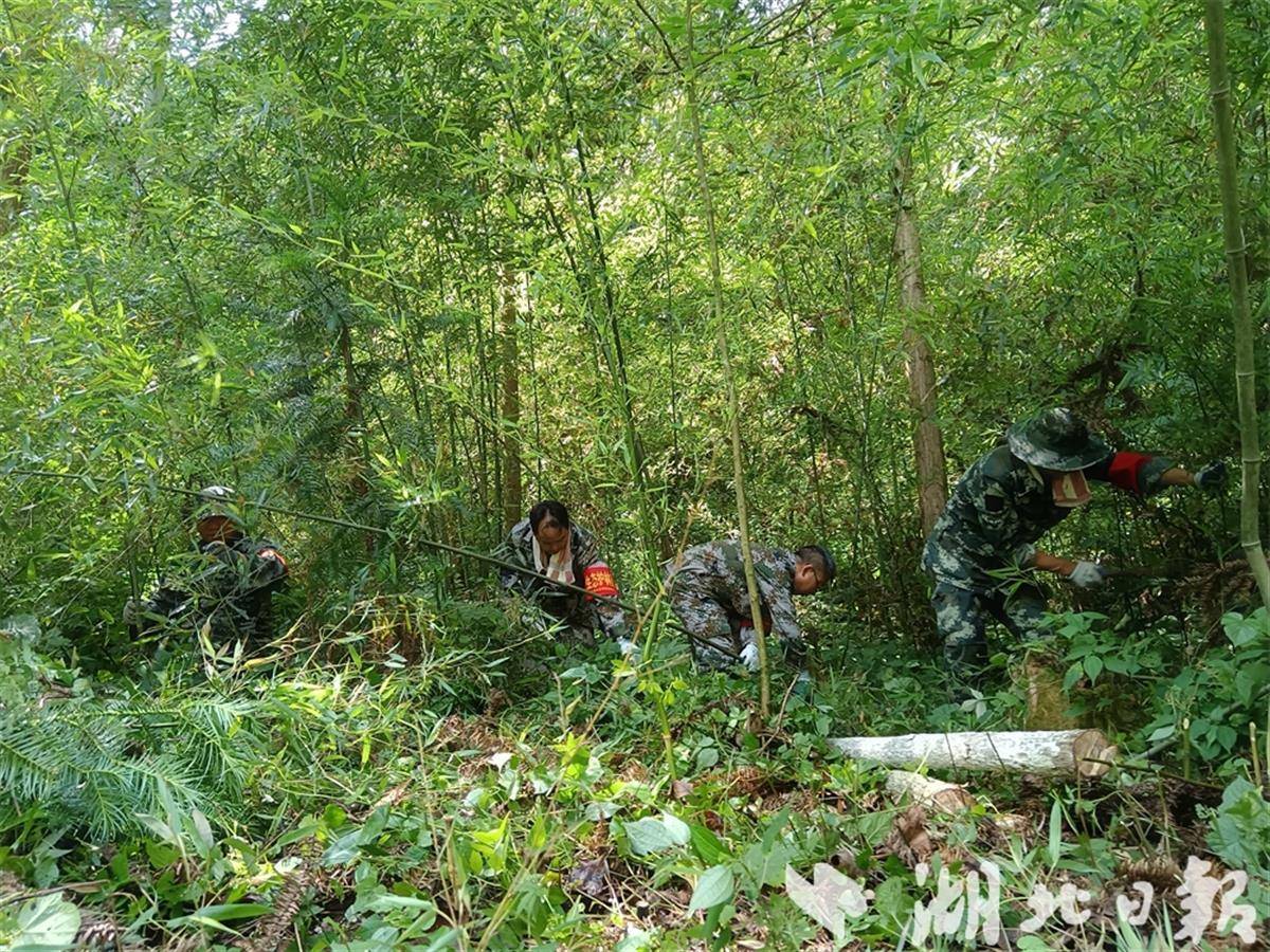 湖北日报讯(通讯员李镇海、肖兵、华伟)6月21日,十堰市黄龙林场在老母荒林区开展森林抚育工作,林场49名党员干部职工参加抚育。
