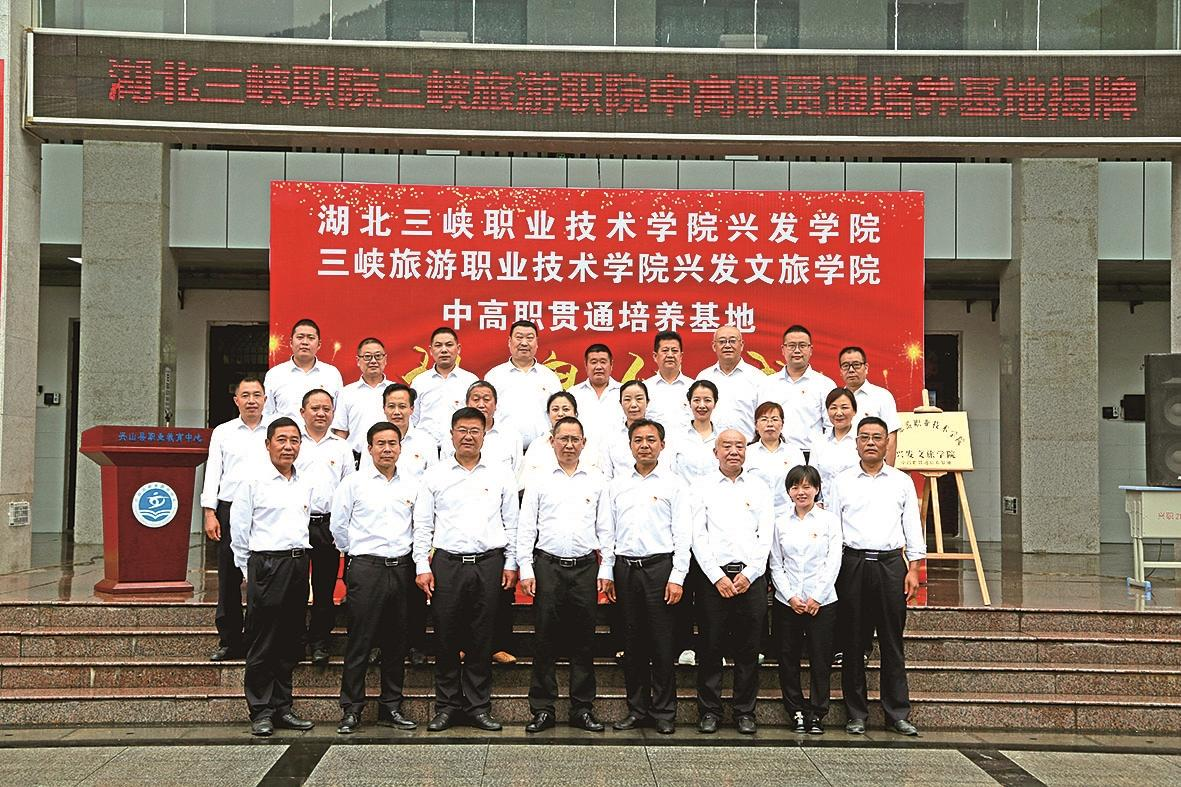 联合办学成效显著。学校是本地支柱企业兴发集团的职工培养、培训基地,企业是学校学生的实习、实训基地。学校与兴发集团探索建立联合培养、分段育人的现代学徒制,将实习学生作为企业新员工及后备技术人员培养,高标准建设校企共用实训基地“校中厂”“厂中校”,形成现代学徒制的办学特色。累计为兴发集团输送中专毕业生6698人,培养大专生2000多人,轮训职工100多期5000多人次。2021年8月,兴发集团与兴山职教中心校企合作恳谈会达成共识:凡是就读兴发集团化工、水电、旅游订单班的学生,兴发集团给予中专生500元、大专生1000元每月的生活补助,并免费统一发放校服和享受兴发集团正式员工买房优惠政策,买房优惠10万元等,许多外地外县的学生也慕名前来就读。今年5月20日,兴发集团、兴山县职教中心分别与湖北三峡职业技术学院、三峡旅游职业技术学院签订了《合作办学协议》,开启了校地互惠合作及高职院校、国企与中职院校协同育人新的篇章。