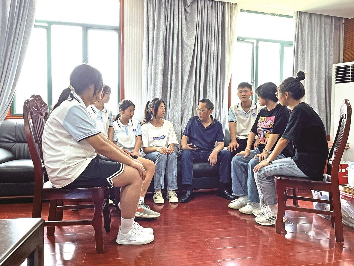 兴山职中校长李传华(右四)与学生“心连心”