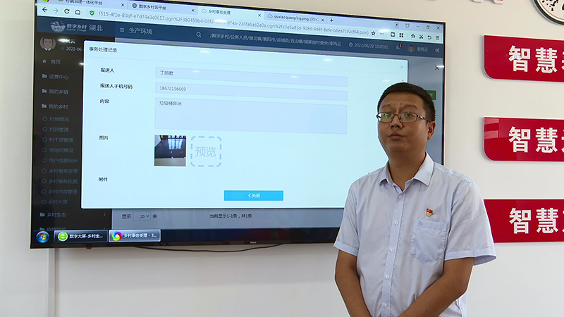 中国联通谷城分公司副总经理周玮介绍:“如果村民发现有垃圾未及时清理,可以通过我们平台的手机端,将垃圾没有清理的情况及相关照片进行上传,村里就会在第一时间收到相关的消息,并安排人上门及时处理。”