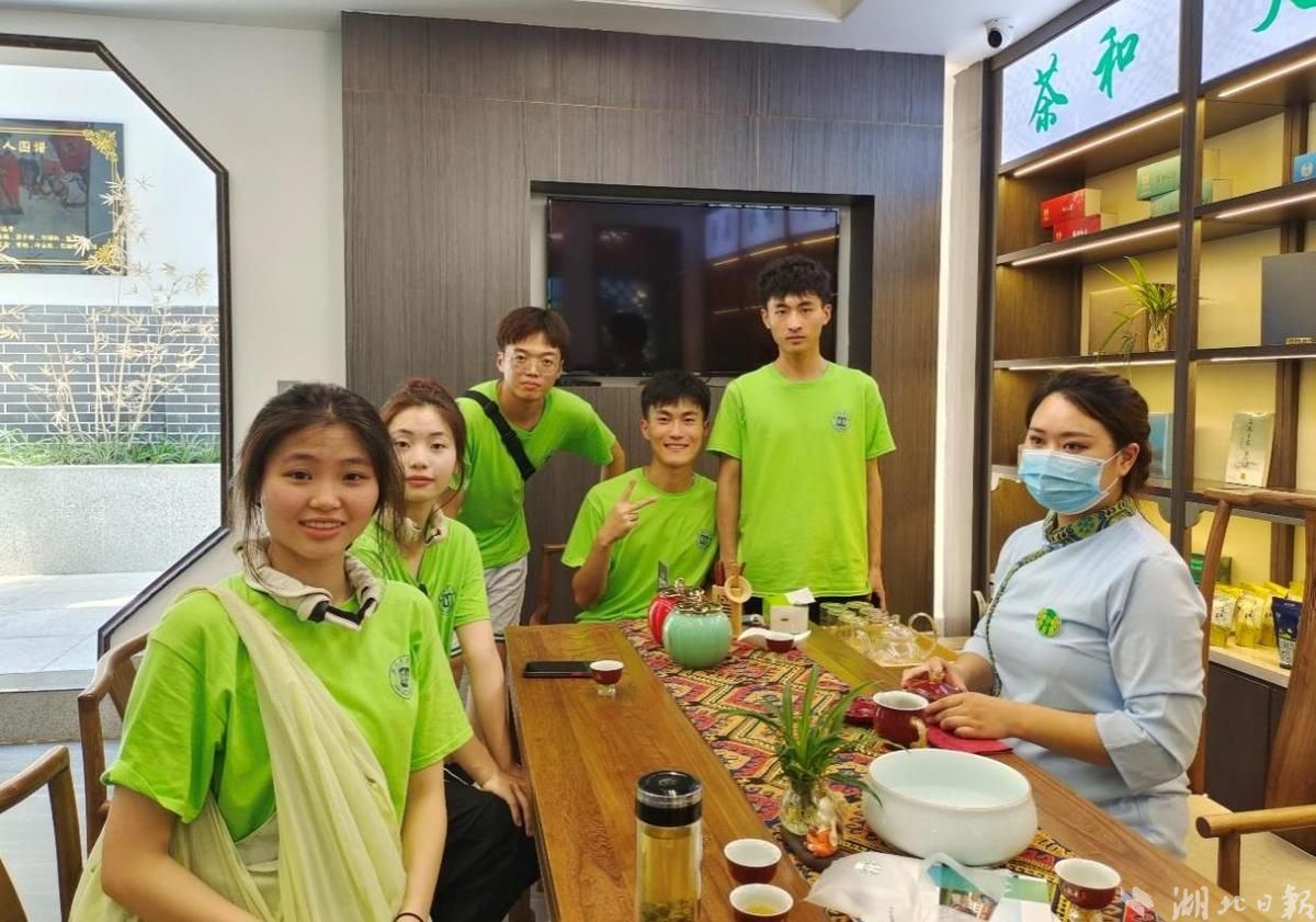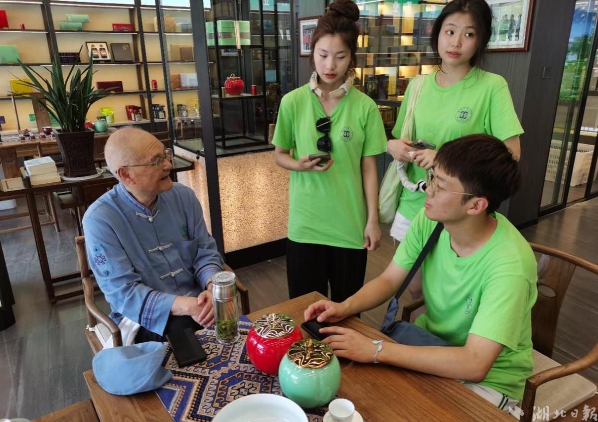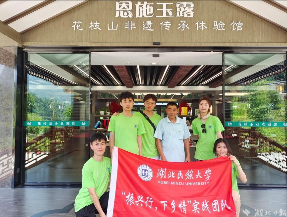 湖北日报客户端7月9日讯(通讯员吴秀娟、王顺发)乡村是中国的根脉,是国家大厦的基础。新时代下,我们要感知乡村的体温,镌刻时代的表情,当一粒粒汗水化作实实在在的数字,眼前呈现的已不仅仅是风景,更是时代的担当。7月2日至7月11日,湖北民族大学“振兴行,下乡情”助力龙马乡村振兴校级实践团队赴恩施州龙马乡开展暑期社会实践活动。实践团队于7月8日上午到达纯堡花枝山茶厂对手工制茶“恩施玉露”进行观摩和学习,并与国际硒茶大师、恩施玉露制作技艺国家级代表性传承人杨胜伟老师对话。