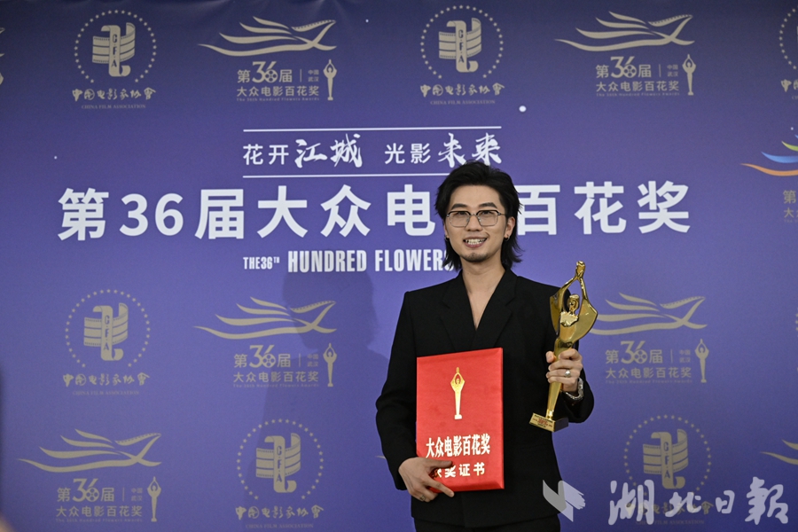 《扬名立万》获得最佳编剧奖,刘循子墨领奖(湖北日报全媒记者倪娜、何宇欣摄)