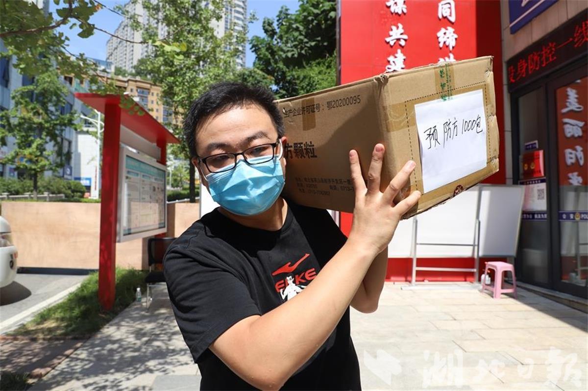 “我们是十堰市中医医院的,今天为你们送来4600袋防疫中药汤剂,一人每天两次,一次一袋,儿童减半服用……”8月15日下午,十堰市中医医院药剂科主任童学飞率人将46箱熬制好的中药汤剂交给封控区宜昌路永兴小区工作人员,又匆匆为下一个封控区配送防疫中药。
