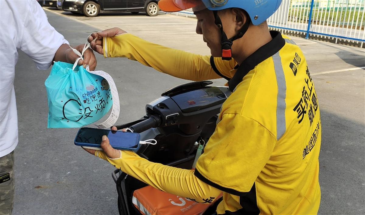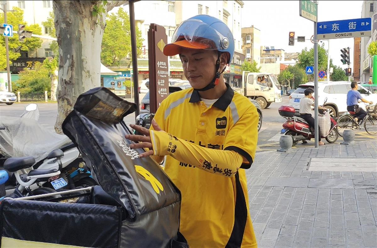 快速取完餐,到达送餐地点,给顾客打电话,直到亲手把餐交给顾客后,朱海涛才放松下来。他擦了擦汗,笑着对记者说:“这单还挺好,不用爬楼。”(湖北日报客户端全媒体见习记者吴宇睿)