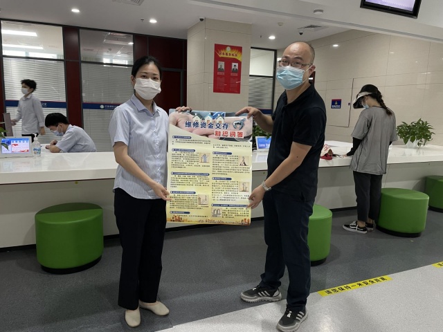 8月18日,区住建局物业发展中心联合区专户银行--武汉农村商业银行江夏支行先后来到区市民之家住建窗口、保利军运村交房现场,通过发放宣传手册、张贴宣传海报、拉横幅、面对面宣讲答疑等方式,为交房业主解答维修资金交存政策。