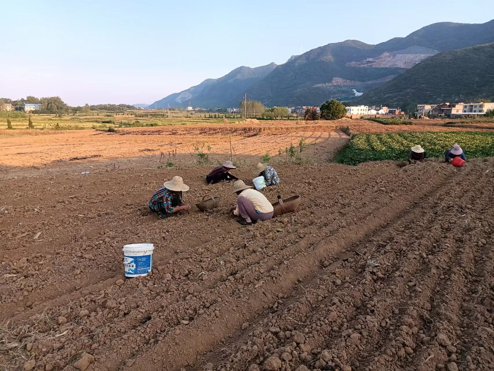 湖北日报讯(通讯员曾邦勇)26日一早,在阳新县黄颡口镇太平村正洲种养殖家庭农场的蒜苗基地里,10位村民正在基地负责人程时海的指导下种大蒜。