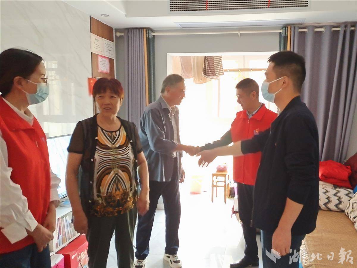 田金平也是一名社区党员志愿者,疫情期间经常在社区帮忙到凌晨才回家休息,2022年年中,他心脏搭桥手术康复没多久,又执意返回战疫一线。项目党员代表被他的奉献精神所感动,带着米、油等生活物品前去慰问他和80岁的母亲,田金平激动地紧紧地握住了项目党员志愿者的手。