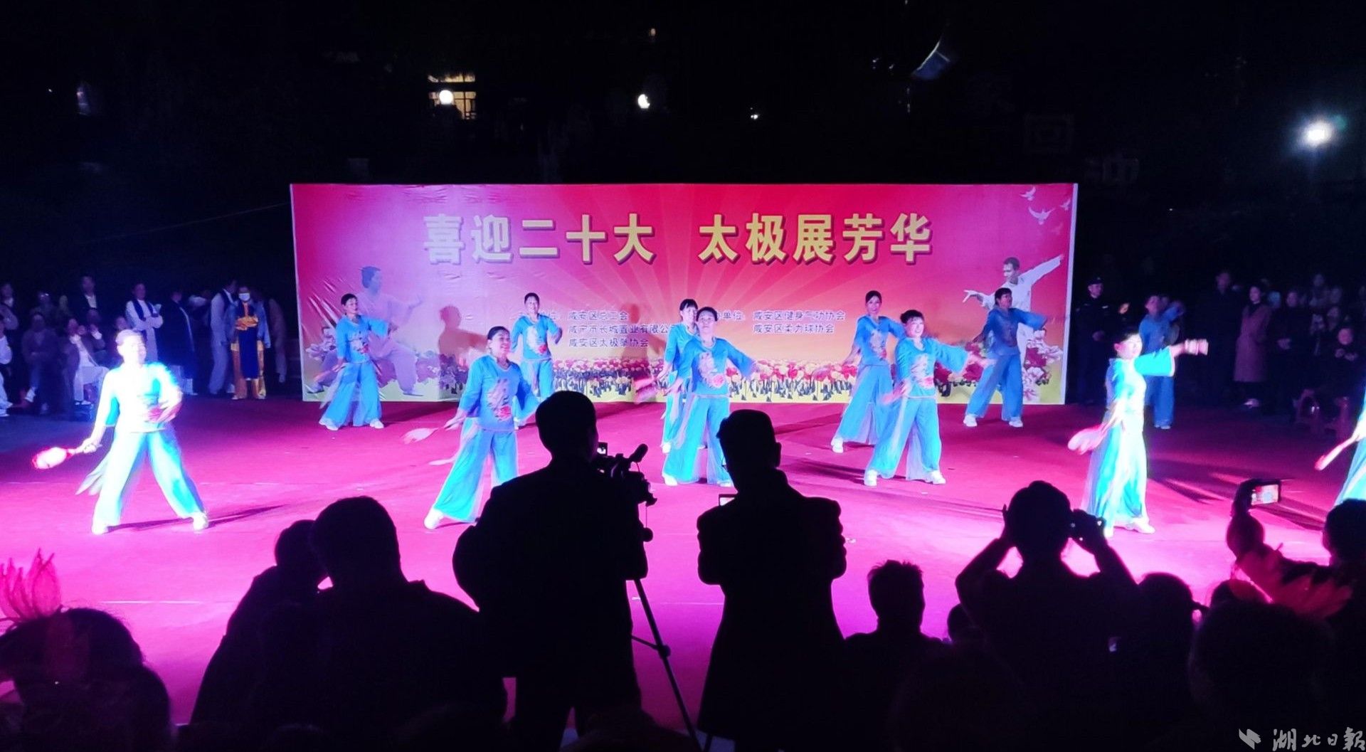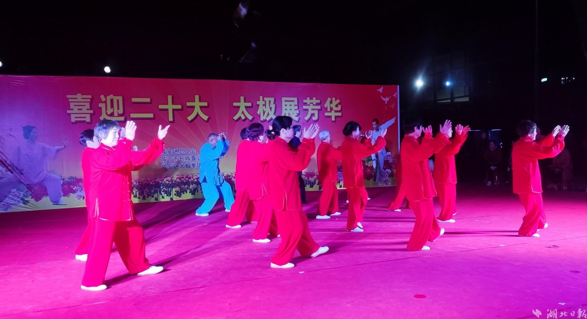 湖北日报客户端讯(咸安频道通讯员 洪瑞 佘艳 汪涵)10月10日晚,咸安区“喜迎二十大 太极展芳华”群众性文艺汇演在水榭花都小区举行。