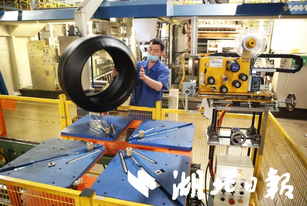 湖北日报客户端讯(通讯员 赵尹 许荣旗 张启国)10月14日,在双星东风轮胎工业4.0智能制造工厂成型车间内,伴随着机器的高速运转,一名工人通过操作设备控制面板,仅需简单地放置两个胎圈,轮胎便自动成型。经自动称重、贴码、芯片识别后,通过自动提升系统上升到指定位置,由早已等待在这里的EMS空中运输系统运送到智能胎坯立体库存储。只需35秒,这个带有“独一无二”芯片的轮胎就生产下线。
