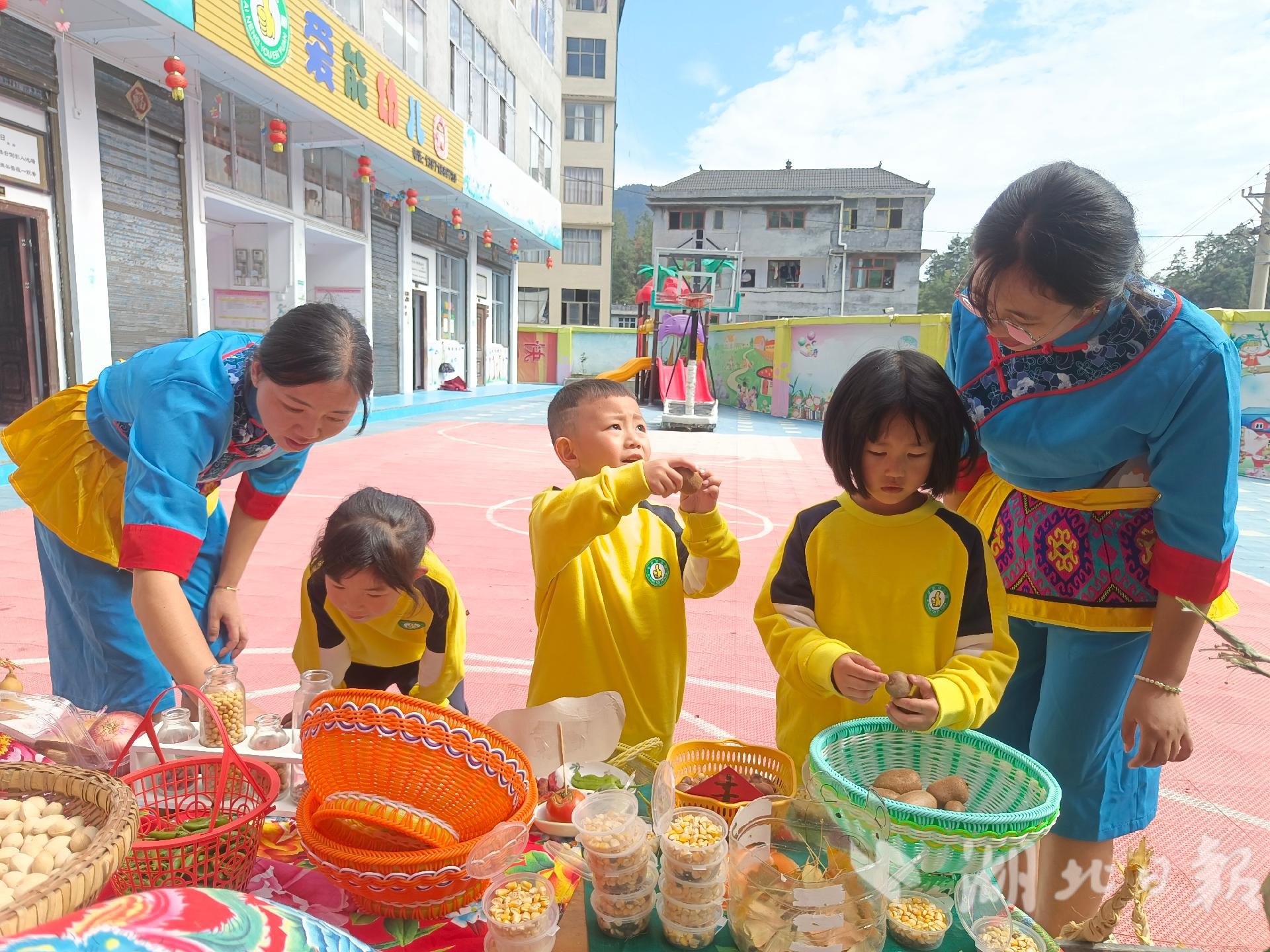 湖北日报客户端讯(咸丰频道通讯员彭林)10月20日,咸丰县小村乡爱能幼儿园在校园内举办“秋趣·秋收”主题活动。