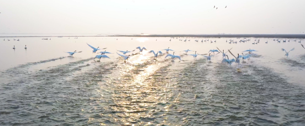 到了冬天,这里会成为汉川顶流观鸟乐园,十万只候鸟从北方飞来,在薄雾茫茫的湖上,勾勒出一幅自然和谐的生态美景。