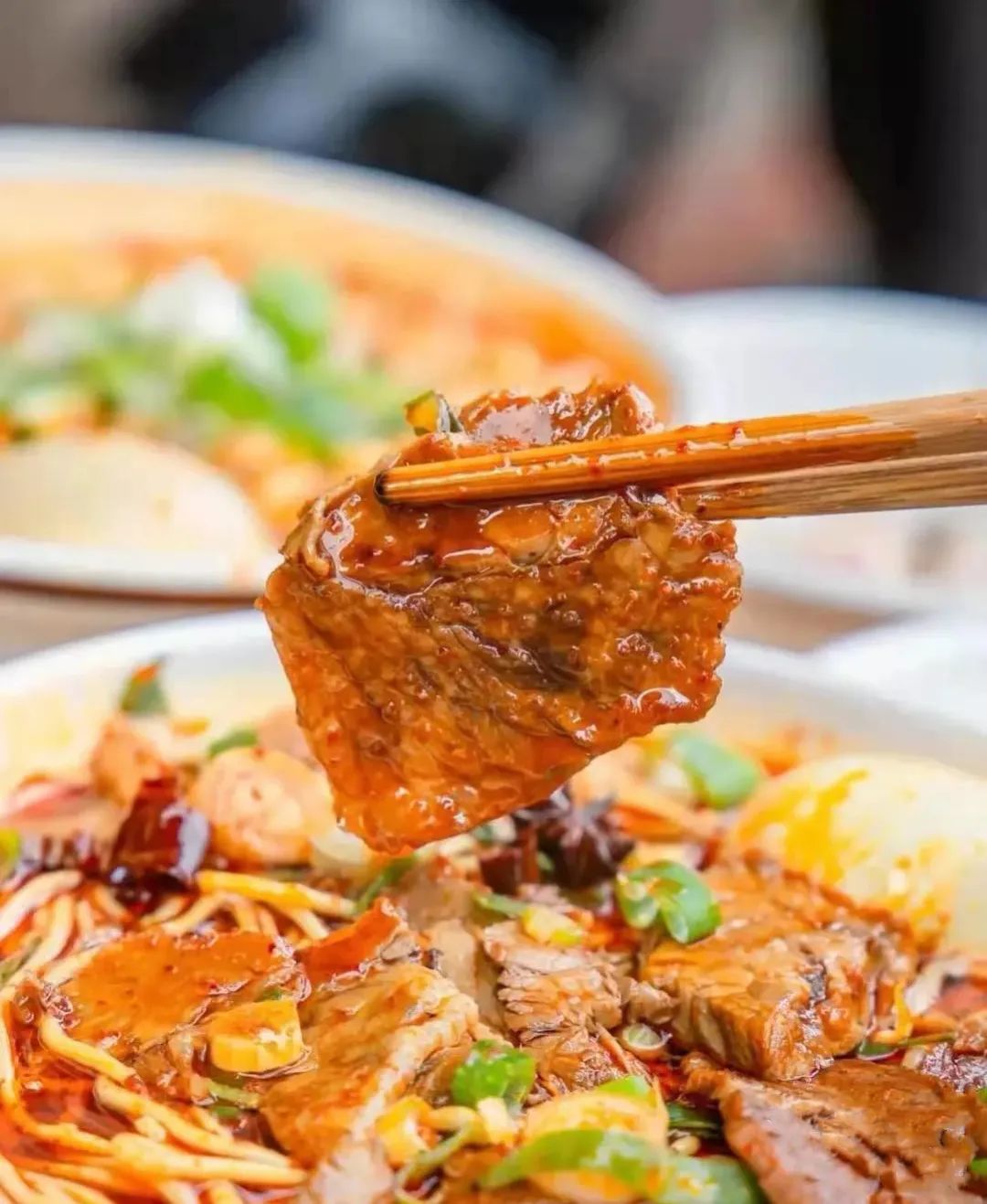 开了十几年的邓家牛腩,在襄阳可真算得上“大名鼎鼎”。相比街头巷尾的牛肉面馆,经营面积约几百平方米的邓家牛腩,可谓宽敞豪华。每天一大早就排着队,只为吃上这一口面的老饕更不在少数。主打的一碗牛腩面18年来吸引了无数外地游客,渗入牛腩里的红油,仿佛像襄阳人一般,热情好客。