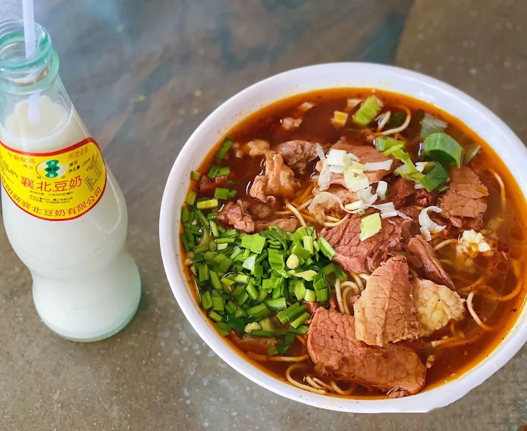 望氏立业面馆的清油面可谓店里的招牌产品,实打实纯中药熬制的汤底,将中医食补文化发挥的淋漓尽致。一碗厚实汤头的牛肉面加上满满的大葱香菜,浸满了汤汁的面条吸入口腔,幸福感爆棚。在望氏立业面馆点上一碗面条,配上老板独家制作的面窝,加上襄阳才有的襄北豆奶,真的是襄阳到家了。