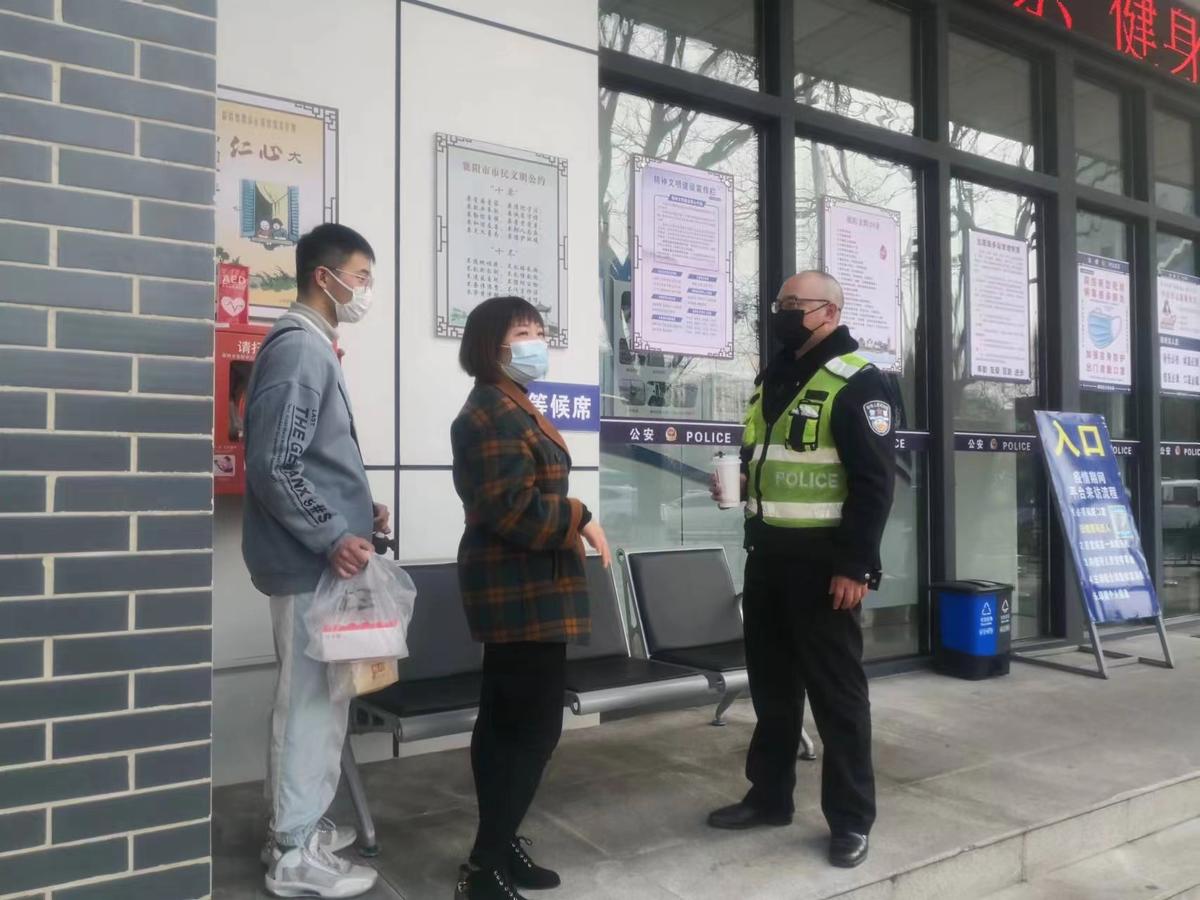 图为周涛妻子和儿子来檀溪警务平台看望周涛