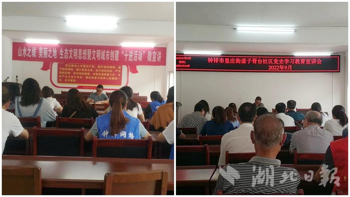 传递党的声音 格外“凝心”。为全景式宣传党的光辉历程和宝贵经验,皇庄街道子胥台社区积极开辟“线上+线下”的学习“微课堂”“结合”文章。线上社区网格员通过居民微信群分享党史学习教育内容,实现优质资源“实时转播”,营造互学互进的浓厚氛围;线下组织党员在社区活动室开展“党史报告会宣讲”以及“学习宣传贯彻党的二十大报告精神微课堂”主题活动,带领辖区党员和居民群众一起认真学习了党的二十大报告全文,大家一致认为习近平总书记所作的报告内涵丰富,对进一步统一思想,凝心聚力具有深远意义。