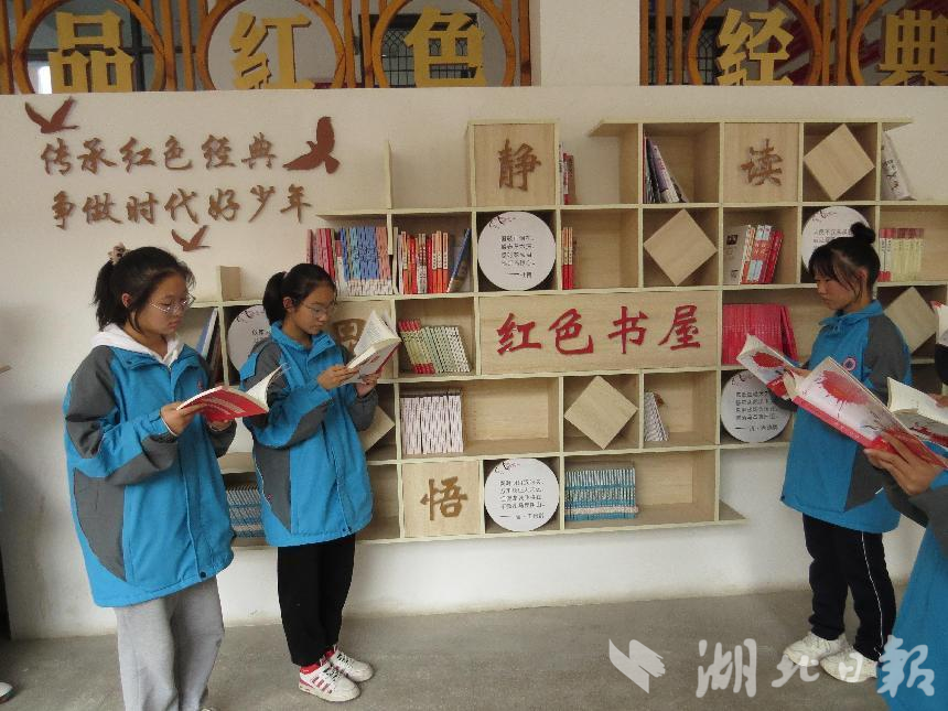 一楼廊柱寄语渗透爱国情,二楼家国诗词激发爱国心,三楼红色家书传承好家风,四楼红色精神引领奋斗路,五楼拐角红色书屋熏陶报国志。读红书、读经典深深扎根在每一个学生内心深处。