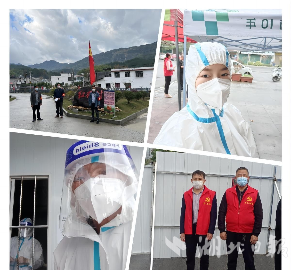 临近中午,家家户户都在准备午饭,核酸采样点的党员志愿者何红清、吴杨宝等人却忙碌着,还在协助医护人员开展秩序维护、引导咨询、信息采集等工作。