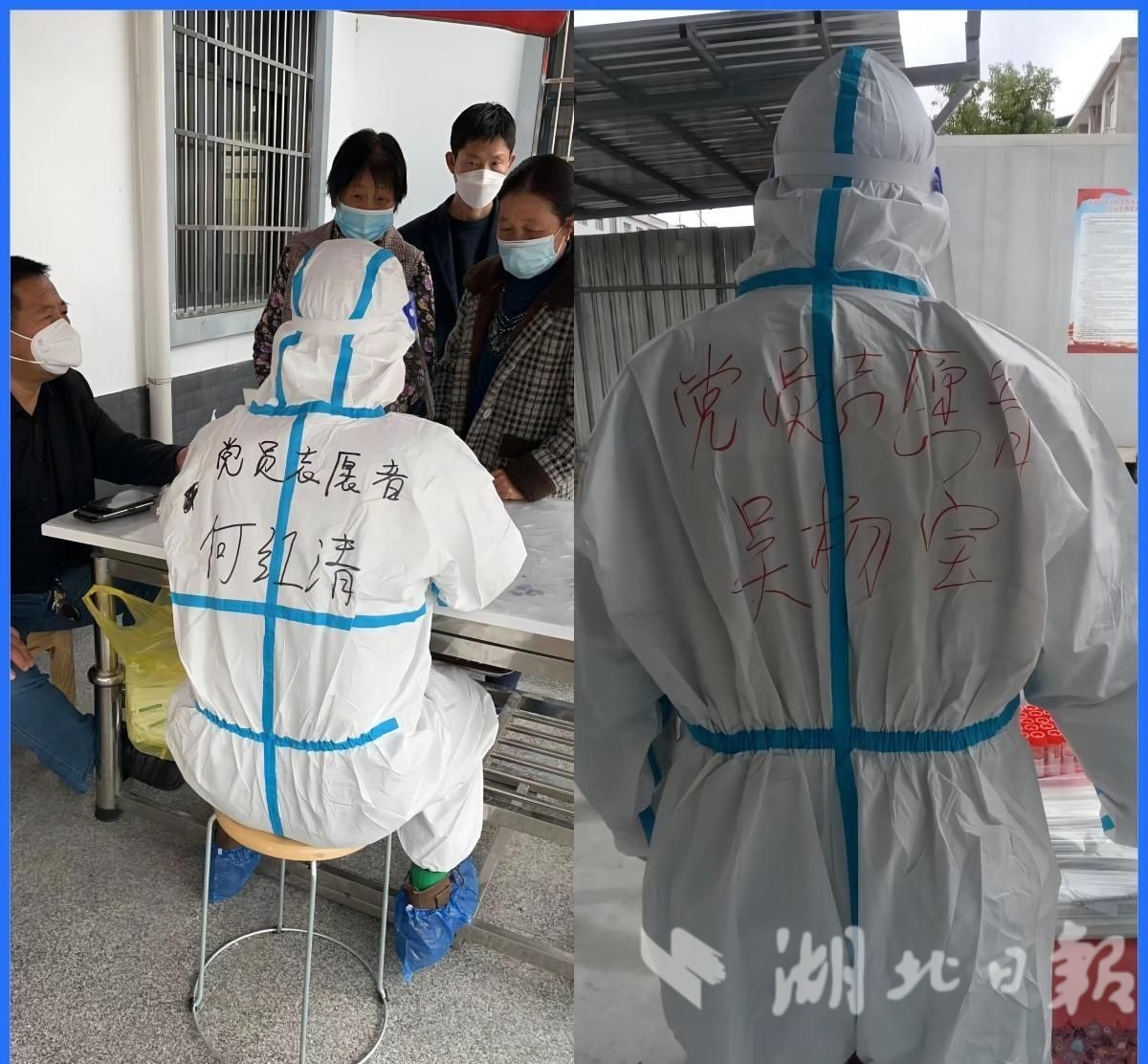 何红清是何塅村的一名干部,在做好本村工作外,积极投身到疫情任务较重的麦市村参加志愿活动;85后青年志愿者吴杨宝,是一名回乡创业青年,在经营自己事业的同时也十分热心公益。此次疫情来临,“小麦粒”志愿服务队招募队员成立先锋队,他们第一时间报名,经过培训,化身为“大白”。问他们为什么这么积极,“我们觉得,作为一名共产党员,就应该冲锋在前,如果能帮助到大家,心里感到非常的光荣。”何红清、吴杨宝说。