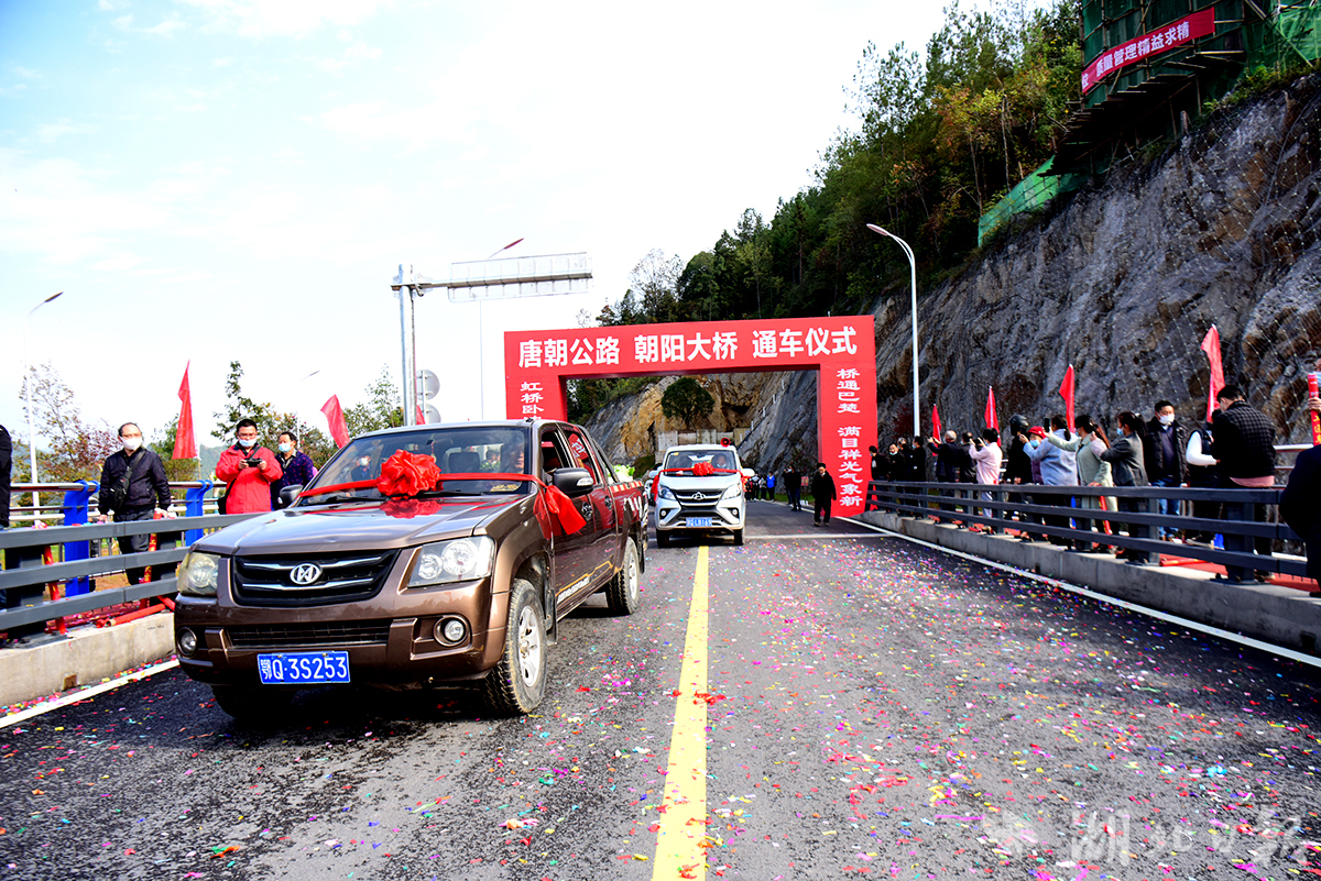 11月25日,咸丰县唐朝旅游公路控制性工程朝阳大桥正式通车,不仅结束了两岸群众隔河相望、绕道而行、舟楫以渡的历史,也为渝东南地区进入世界文化遗产唐崖土司城址景区打通了快捷通道。