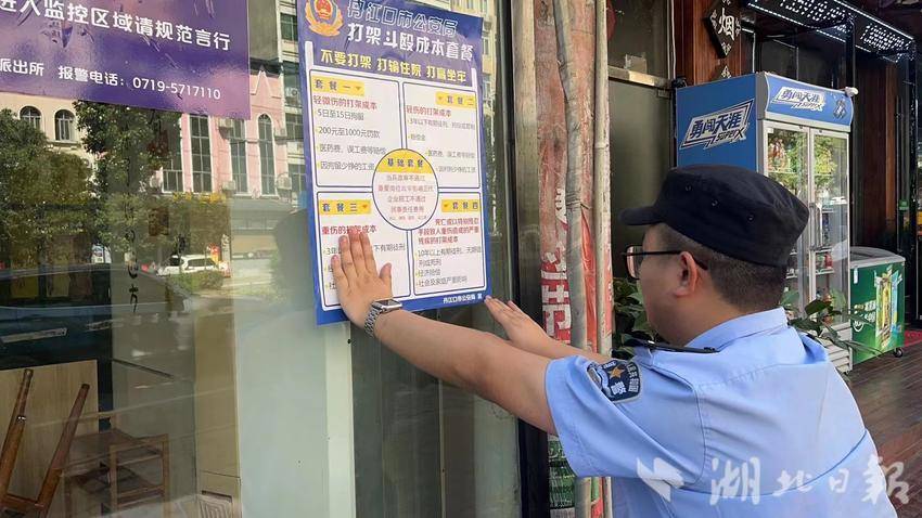 湖北日报客户端讯(通讯员 朱琳娜 王阳)夏季酷热来临,寻衅滋事、故意伤害、殴打他人等案件呈高发态势。为持续优化营商环境,有效预防和减少夏季打架斗殴案件发生,近日,丹江口市公安局六里坪派出所结合辖区治安形势和发案规律,深入重点娱乐场所开展“打架算成本”法制宣传活动。