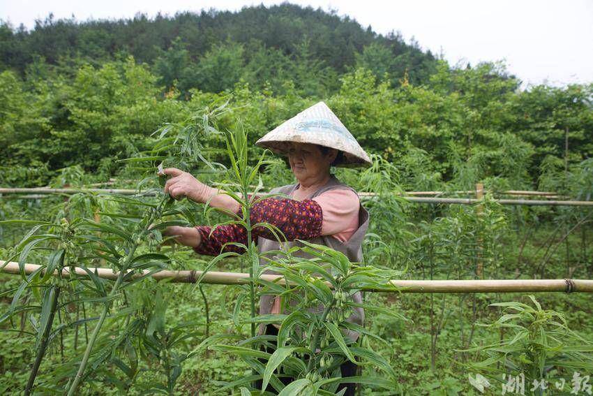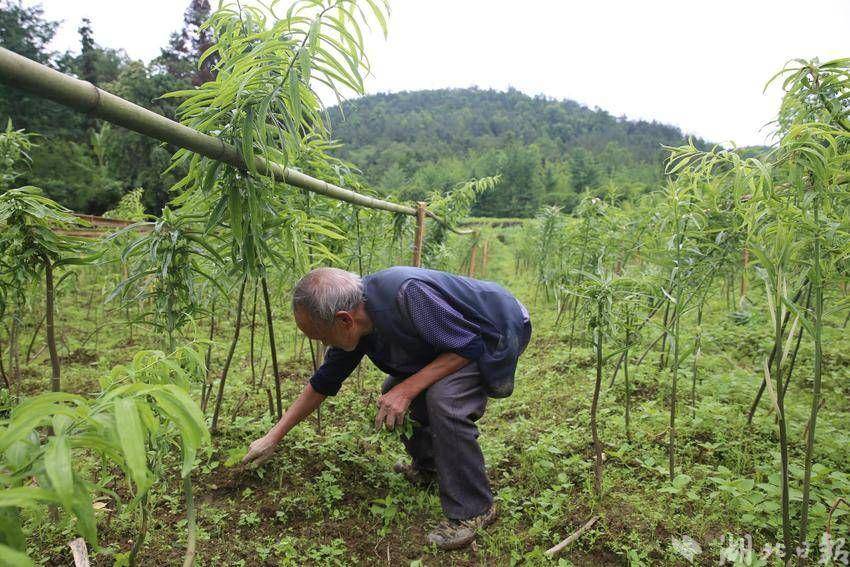 湖北日报客户端讯(通讯员谭昌龄、王缘 、周国顺)6月8日,在咸丰县高乐山镇白果坝村一处黄精种植基地,村民田世万正忙着给黄精除草,加强生长期的管护。